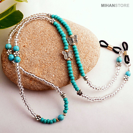 بند عینک مرواریدی دخترانه، ساخته شده از سنگ های متعدد با ترکیب رنگی چشم نواز علاوه بر کارایی ، چهره ی منحصر به فردی را به عینک شما می دهد. شما به وسیله ی این محصول میتوانید عینک خود را به گردنتان آویزان کنید و برای افرادی که مدام عینک خود را از چشمشان بر میدارند و دوباره آن را مقابل چشمانشان قرار میدهند بسیار مفید است و زیبایی محصول باعث می شود که هم راحتی استفاده را داشته باشید و هم گردنبندی زیبا بر گردنتان باشد. قابل ذکر است با توجه به طرح های متعدد و مختلف این محصول ارسال طرح به صورت رندوم انجام خواهد شد.