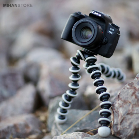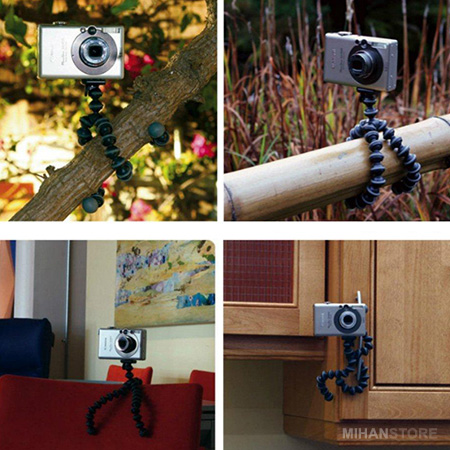 لرزش دست در هنگام عکاسی، یکی از عواملی است که روی کیفیت عکسها تاثیر نامطلوبی میگذارد. استفاده از سهپایه و تکپایه در عکاسی حرفهای و غیرحرفهای برای این است که از لرزشهای ناخواسته جلوگیری شود. سه پایه انعطاف پذیر گوریلا سایز متوسط 130 گرم وزن دارد و حداکثر ارتفاع آن 25 سانتیمتر است. حمل آن راحت است و درون کیف و کولههای شخصی یا لپتاپ جای میگیرد. پایههای آن از گویهایی تشکیل شده است که به کمک مفصلهایی انعطافپذیر در کنار هم قرارگرفتهاند. این مفصلها امکان تغییر زاویه و خم و راست شدن را به هرکدام از پایهها میدهند؛ در نتیجه میتوان آنها را به فرم دلخواه درآورد، از جایی آویز کرده یا به دور جسمی دیگر متصل کرد. این پایهی انعطافپذیر کوچک با پایههای ضد لغزشش، امکان ثابت نگهداشتن گوشی را روی هر سطح ناهمواری فراهم میکند.