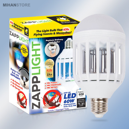لامپ حشره کش برقی مدل زپ لایت محصولی بسیار کارآمد برای هر مکانی می باشد. این لامپ دو کاره هم به عنوان یک لامپ ساده کم مصرف اما پر نور قابل استفاده است و هم به عنوان لامپ حشره کش فلورسنتی که می توان هم به سرپیچ سقفی پیچ کرد و هم به سرپیچ های رومیزی. لامپ حشره کش زپ لایت را می توانید در منزل، حیاط، اتاق خواب، باغ، محل کار، رستوران ها و ... استفاده کرد. زاویه نور دهی لامپ 120 درجه و نور سفید با پایه E27 می باشد. این محصول با ایجاد نور بنفش حشرات موذی را به خود جذب کرده و پس از برخورد حشره با قسمت داخلی لامپ ازبین می رود. با داشتن این محصول خارق العاده دیگر نیازی به استفاده از سموم و حشره کش های شیمیایی مضر و حساسیت زا نخواهید داشت.