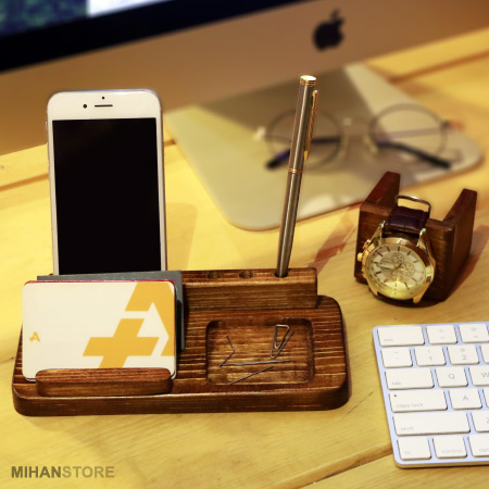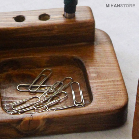 برای انجام امور روزانه و کارهای محول شده باید لوازم مورد نیاز هم در دسترس باشد ، لوازمی مثل خودکار، موبایل، سوزن و سنجاق و .... در عین حال مرتب نگه داشتن آنها به تنهایی کار دشواری است و اغلب بدون داشتن یک ست لوازم اداری مناسب، شاید زمان زیادی از شما بگیرد. ست رومیزی چوبی جا موبایلی و ساعت یکی از آنهاست، از ویژگی های این محصول سبک بودن، مقاومت و دوام بالا و طراحی مدرن و به روزی که دارد می توان اشاره کرد. از دیگر ویژگی های ست رومیزی چوبی دارای جایگاه ساعت، موبایل، انواع کارت، خودکار و مداد و جای سوزن و سنجاق می باشد. این ست رومیزی کاربردی مناسب برای افرادی است که میزشان فضای قرار دادن وسایل را ندارند.