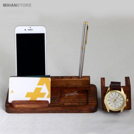 ست رومیزی چوبی جا موبایلی و ساعت