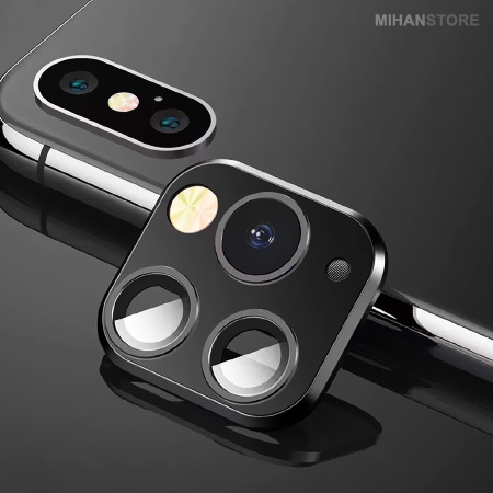 دوربین های امروزی گوشی ها بیرون زدگی تقریبا زیادی دارند و موجب میشود در زمانی که موبایل خود را روی میز می گذارید موجب خط و خش افتادن روی آن شود.کیت تبدیل لنز آیفون X به آیفون 11 دارای جنسی پلاستیکی سخت می باشد و مناسب گوشی iPhone X / XS / XS Max می باشد. این محافظ و تبدیل کننده ظاهر لنز به رنگ مشکی بوده و با رنگ بندی فریم مشکی ، نقره ای و رزگلد می باشد که هنگام ثبت سفارش می توانید رنگ مورد نظر را انتخاب کنید. این محافظ علاوه بر محافظت از لنز دوربین گوشی شما می تواند ظاهر قسمت دوربین پشتی گوشی را مشابه آیفون 11 پرو می کند. این محافظ در واقع با پوشش لنز و اضافه کردن بخشی اضافی به قسمت کناری ظاهری مشابه آیفون های سری 11 پرو را به گوشی شما می بخشد.