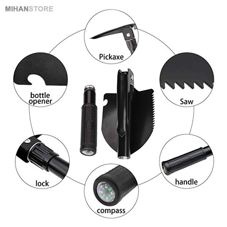 ویژگی های بیل و کلنگ تاشو مسافرتی چندکاره :