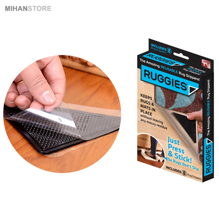 چسب ترمز فرش RUGGIES محصولی جدید و بسیار کاربردی است که از سر خوردن و جابجا شدن فرش روی سرامیک، پارکت، سنگ و ... به راحتی جلوگیری می نماید ضمن آنکه هیچ چسبندگی بر روی فرش یا زمین ایجاد نخواهد کرد. این چسب ها به راحتی قابل شستشو با آب بوده و قابل استفاده مجدد هستند. درون هر پکیج 4 عدد چسب و 4 عدد ترمز فرش قرار دارد که برای استفاده یک فرش کامل کافیست. این چسب ها را هم برای فرش های مستطیلی و هم برای فرش های گرد می توانید استفاده کنید. جنس ترمز فرش RUGGIES پلیمر بوده و از مقاومت بالایی برخوردار می باشد. خطرات سر خوردن روی فرش و آسیب به کودکان در حین بازی بسیار جبران نا پذیر هستند و استفاده از این محصول برای خانه هایی که کف پوش یا سرامیک دارند توصیه می شود.