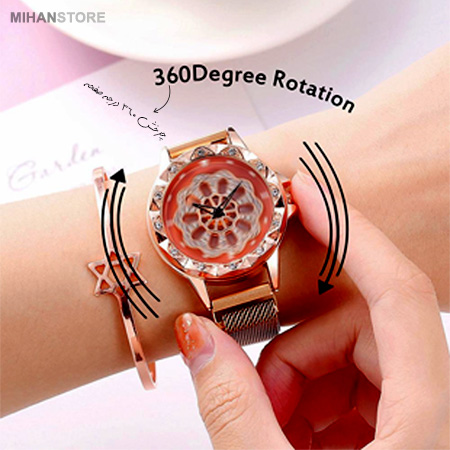 (مگنتی) می باشد که استفاده آن را بسیار راحت می کند و البته ظاهر شکیلی به محصول بخشیده است. نگین های بسیار زیبایی در این ساعت کار شده که جلای خاصی به وجاهت آن بخشیده است. از ویژگی های منحصر به فرد این