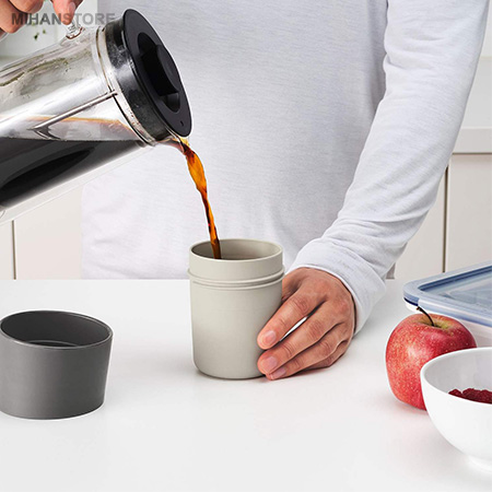 در هنگام رفتن به مسافرت یا زمانی که مشغول به رانندگی طولانی مدت هستید نمی توانید از لیوان های معمولی برای نوشیدن آب و سایر مایعات استفاده نمایید. در این مواقع بهتر است تا از ماگ مسافرتی که اغلب از جنس پلاستیک یا فلز ساخته می شود استفاده کنید. ماگ مسافرتی ایکیا مدل TROLIGTVIS نسبت به سایر لیوان های مسافرتی دارای کیفیت و کارایی بالاتری می باشد و با استفاده از آن می توان تا مدت ها از خرید لیوان مسافرتی جدید بی نیاز شد. ماگ مسافرتی ایکیا مدل TROLIGTVIS از جنس پلاستیک پلی پروپیلن تهیه شده است، به همین علت دارای مقاومت و کیفیت بسیار بالایی می باشد. کیفیت این محصول به اندازه ای بالاست که در اثر برخورد ضربه دچار آسیب نخواهد شد و با گذشت زمان سطح آن پوسته پوسته نمی شود. این محصول دارای دربی از جنس سیلیکون است که با قرار گرفتن آن روی لیوان می توان از عدم خروج مایعات اطمینان حاصل کرد. به همین علت می توانید با اطمینان خاطر مایعات را درون آن ریخته و نگرانی از جهت افتادن لیوان روی زمین و خروج محتوای درون آن نداشته باشید. درب این محصول به صورت پیچی روی بدنه قرار می گیرد و باز و بسته کردن آن بسیار آسان خواهد بود. این ماگ دارای ارتفاع ۱۲ سانتی متری و حجم ۰.۳ لیتری می باشد و به همین علت حجم مناسبی از مایعات را در بر میگیرد. برای این لیوان رنگ بندی های متنوعی در نظر گرفته شده که از آن ها می توان به آبی، سبز، طوسی و صورتی اشاره نمود. بنابراین هر کدام از اعضای خانواده می توانند با توجه به سلیقه خود یکی از این لیوان ها را انتخاب کنند. رنگ های تشکیل دهنده این محصولات بسیار زیبا هستند و هر نوع سلیقه ای را جذب می کنند. قطر بدنه استوانه ای این لیوان 12 سانتی متر است که باعث می شود تا بتوان به راحتی آن را در دست گرفت و از ایجاد خستگی در دستان شما جلوگیری می نماید. همچنین روی درب این محصول دو روزنه وجود دارد که کمک می کند تا بخار نوشیدنی های داغ مانند چای و قهوه به آرامی خارج شوند و دمای این نوشیدنی ها به حد نرمال برسد. روزنه دیگر نیز برای خروج مایعات در نظر گرفته شده و به این صورت به راحتی می توان محتویات درون لیوان را نوش جان نمود.