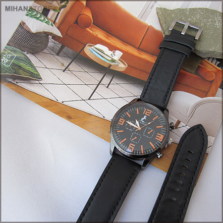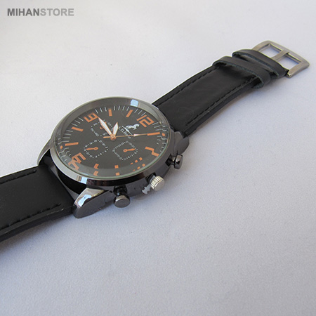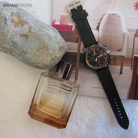 مینوازد. این ساعت شیک با بند چرم مشکی و صفحه مشکی عرضه شده است که با همه رنگها ست میشود. این محصول دارای جعبه