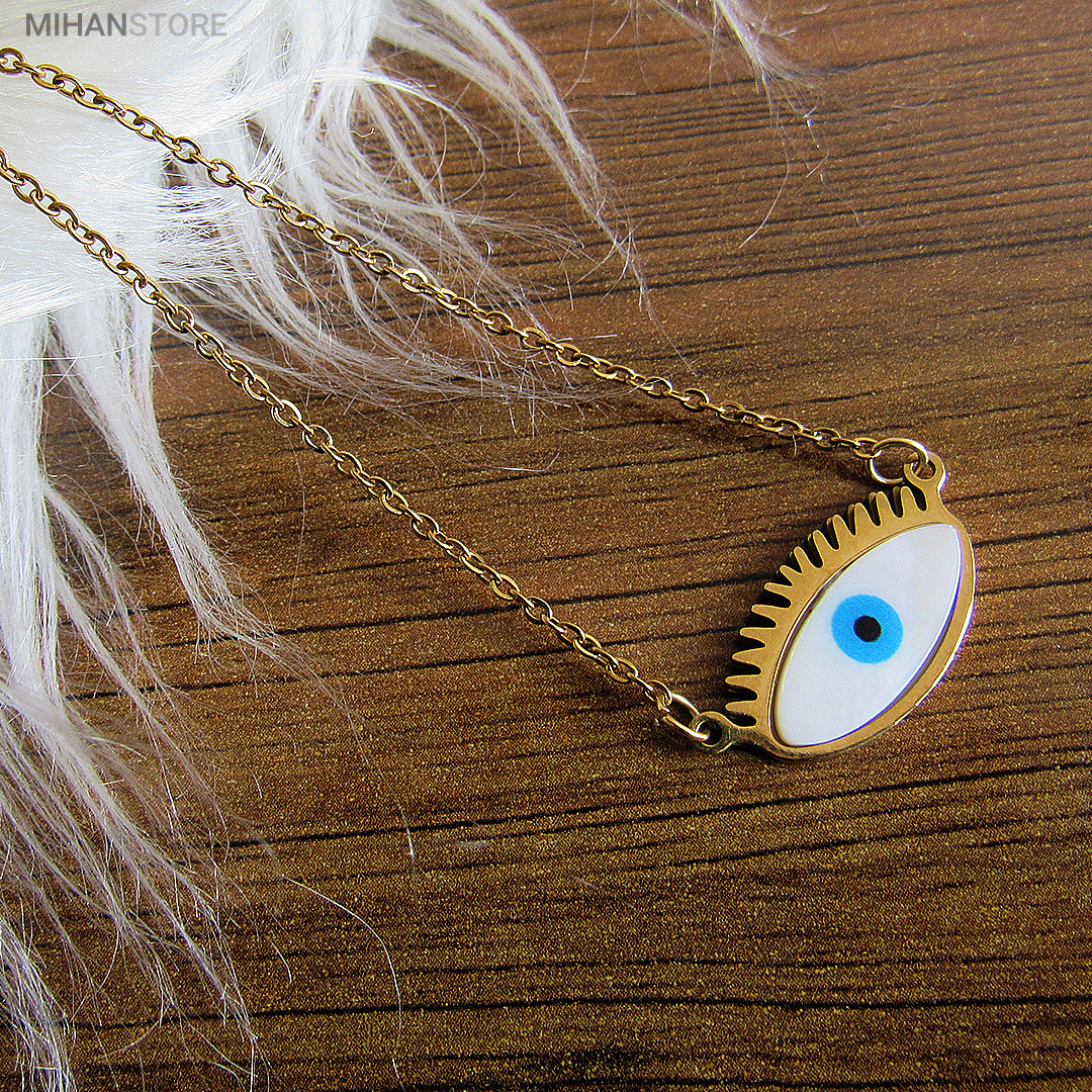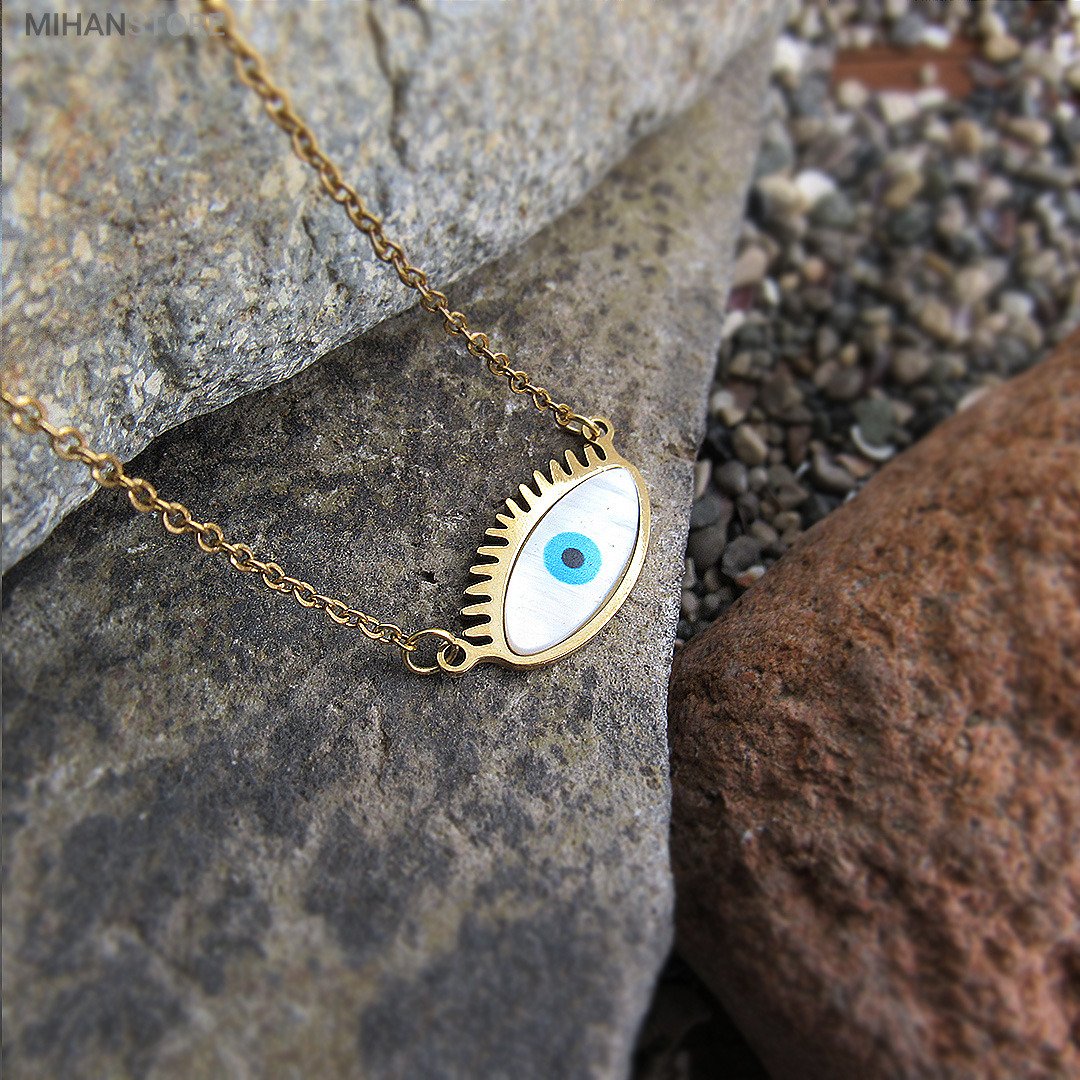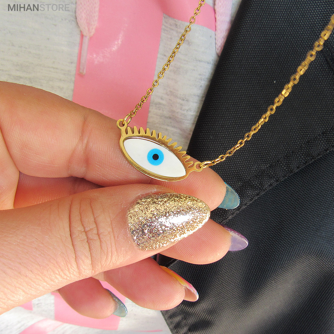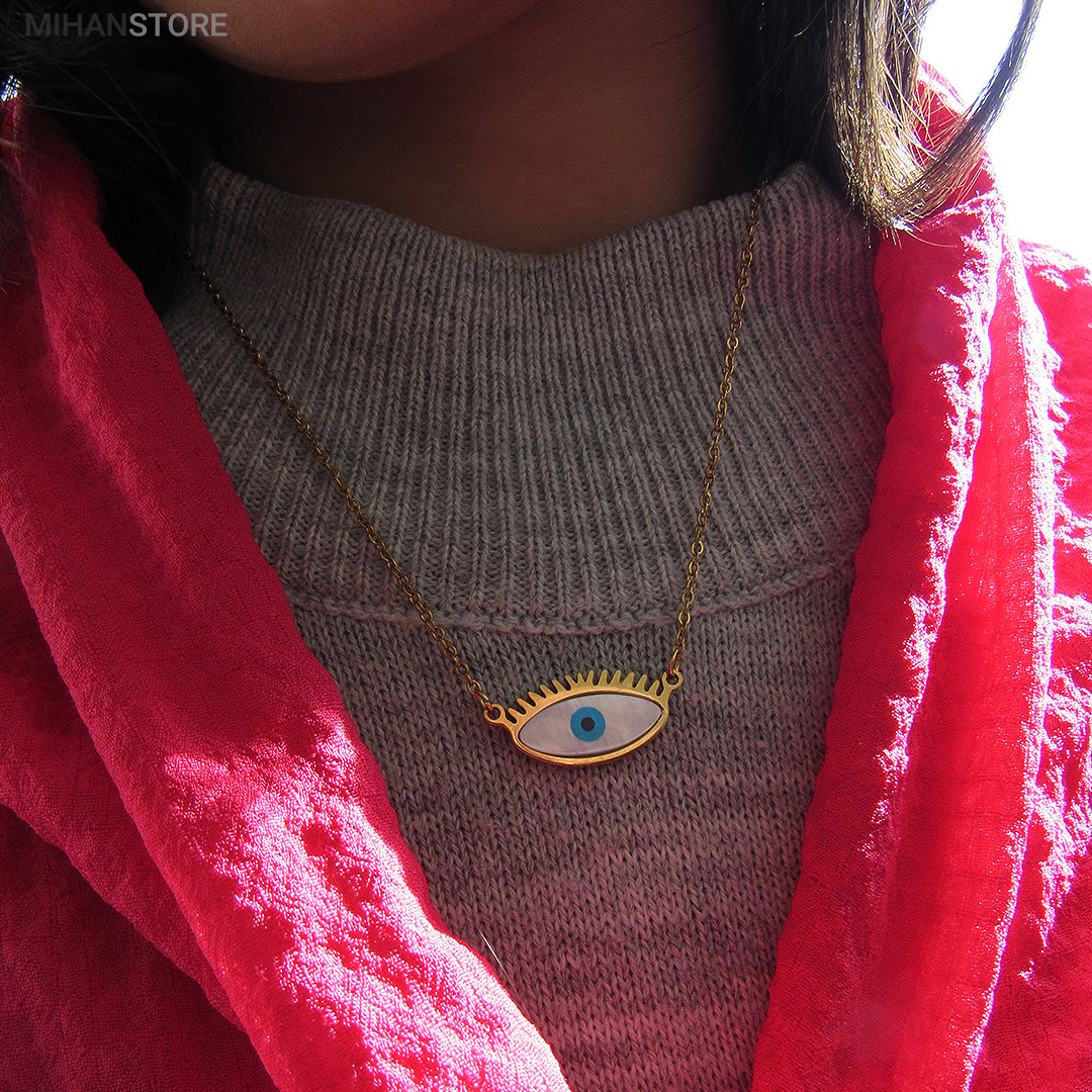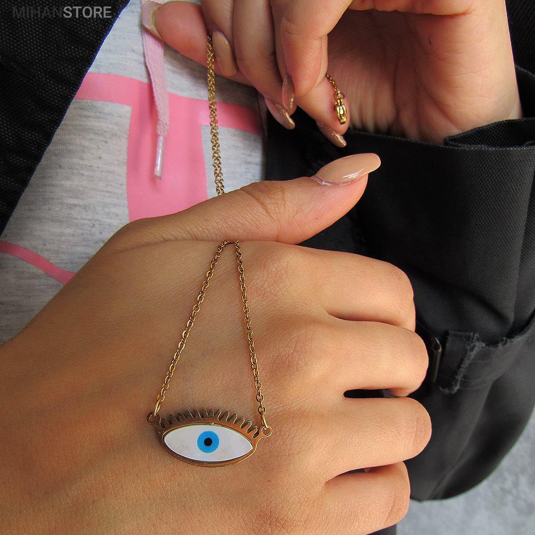 این گردنبند از استیل رنگ ثابت ساخته شده و دارای پلاک چشم نظر خاص و زیبا می