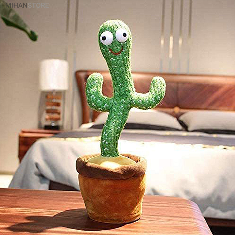 عروسک کاکتوس رقصنده سخنگو شارژی یک اسباب بازی جدید از جنس مخمل است. این عروسک که به شکل گلدان کاکتوس است. طول آن 32 سانتی متر و عرض پایه گلدان 12 سانتی متر است. روکش آن از مخمل و داخل آن با مواد نرم پنبه ای پر شده است. به این نوع اسباب بازی، plush toy گفته می شود. رنگ آن نیز سبز است. کاکتوس سخنگو زیباست و بچه ها آن را دوست دارند. چشمان درشت دارد، جنس آن با کیفیت، نرم و فاقد هر گونه حساسیت است. این عروسک از نوع شارژی که با استفاده از کابل شارژ USB شارژ می شود. بدیهی است که نوع شارژی آن مقرون به صرفه تر است، چرا که نیازی به خرید باتری نخواهید داشت. این عروسک قابلیت ضبط و پخش صدا و در واقع تقلید صدا به مدت 15 ثانیه را دارد. می توانید برای این عروسک لباس دلخواه خود را طراحی کنید و قیافه آن را مطابق با سلیقه خود درست کنید.