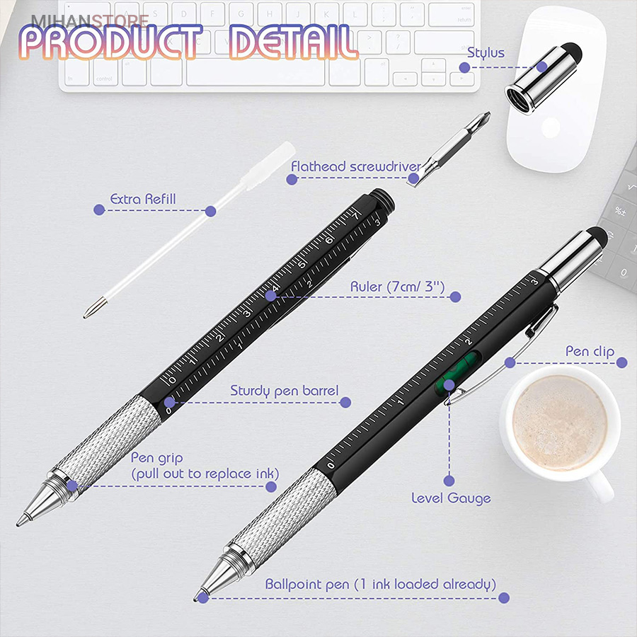 خودکار جادویی 6 کاره که می توانید از آن به عنوان خط کش، پیچ گوشتی، تراز سطح، قلم لمسی و خودکار استفاده کنید. این محصول دارای طراحی بدون لغزش و جوهر یکنواخت برای دست خطی صاف است. خودکار جادویی 6 کاره 16سانتی متر و از یک بدنهی ششضلعی و از فلز ساخته شده است که در دو وجه آن دو خطکش که سانتی متر و اینچ را اندازه گیری میکنند. جوهر خودکار آن نرم و بسیار روان است و با پیچ تنظیم موجود در بالای نوک خودکار، به درون و بیرون بدنهی خودکار حرکت میکند. از دیگر ابزارهای این خودکار میتوان به یک تراز کوچک روی بدنه نزدیک به سنجاق فلزی خودکار اشاره کرد. این تراز بسیار دقیق و کارآمد است. در قسمت انتهایی خودکار، یک برآمدگی لاستیکی مشکیرنگ وجود دارد که بسیار نرم بوده و مناسب استفاده در مواقع ضروری روی صفحهی موبایل بهعنوان ابزاری برای لمسکردن گوشی به جای انگشتان است. این قلم لمسی در قسمت انتهای خود دارای دو پیچگوشتی ریز دوسو و چهارسوست از نوع فلز بسیار محکم که در مواقع لزوم میتوانید درپوش انتهایی خودکار را باز کرده و از پیچگوشتیهایی که روی خودکار سوار هستند، استفاده کنید. در آخر باید گفت این قلم لمسی میتواند گجت بسیار کارآمد در جیب شما باشد کیفیت رنگ این قلم ثابت بوده و در اثر مرور زمان رنگ ان تغییر نمیکند.