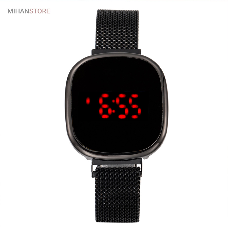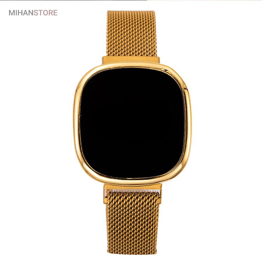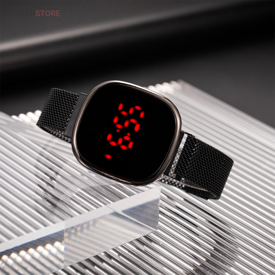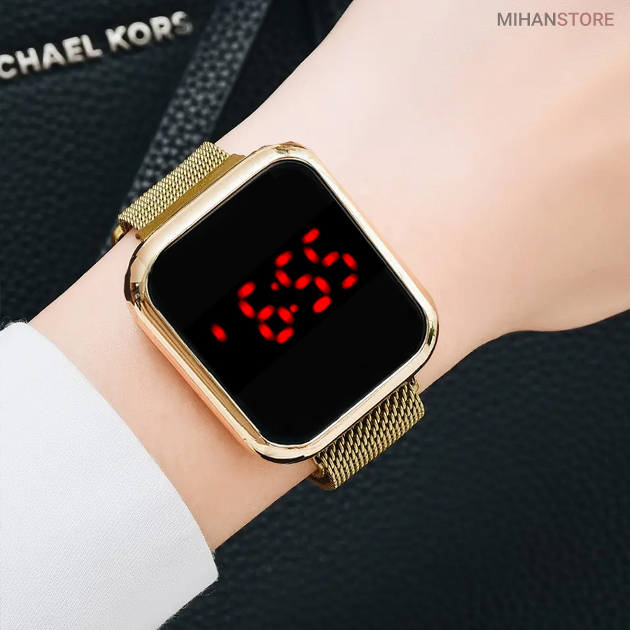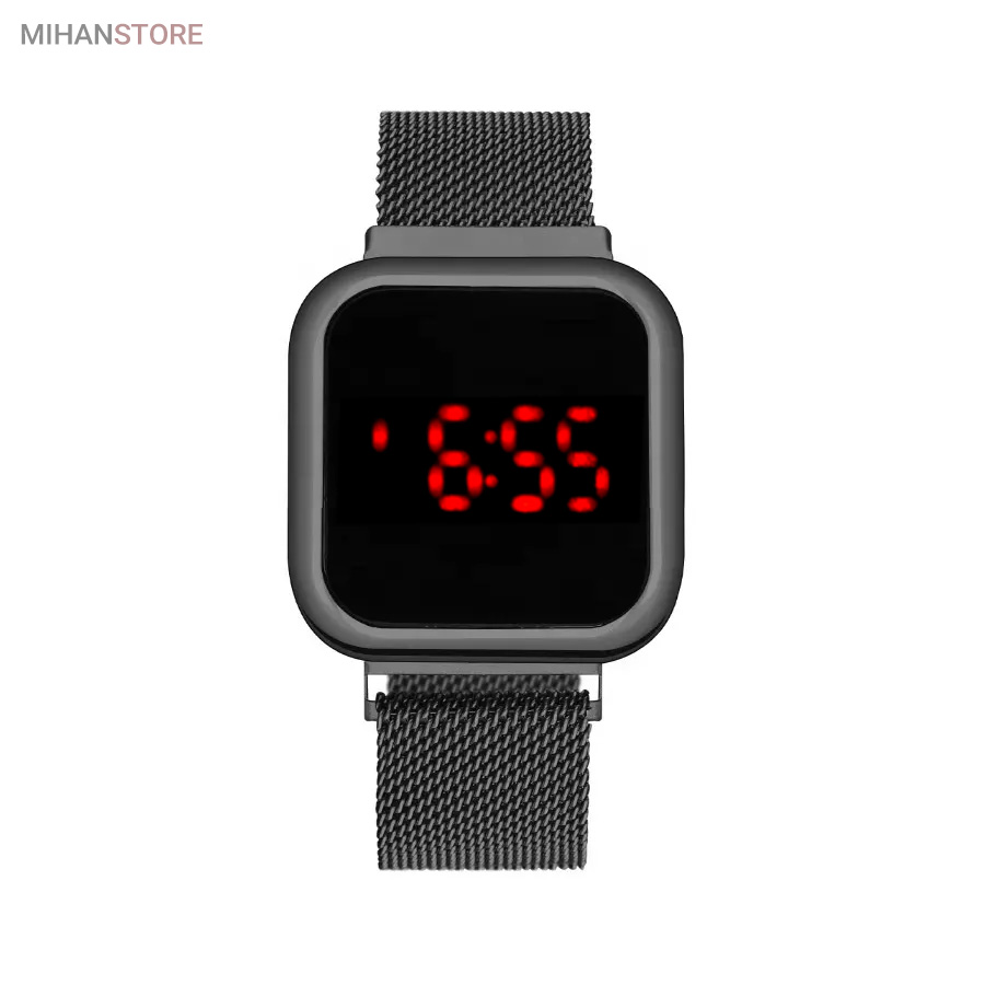 چراغ های LED قرمز رنگ ساعت را برای شما نمایش می دهد. صفحه نمایشی و مربع شکل ساعت در ابعاد 40 × 40 میلیمتر طراحی شده و ضخامت آن در قسمت بدنه 10 میلیمتر است. این ساعت