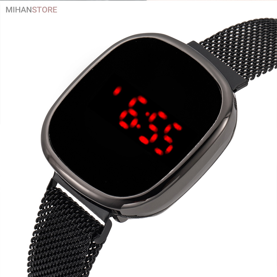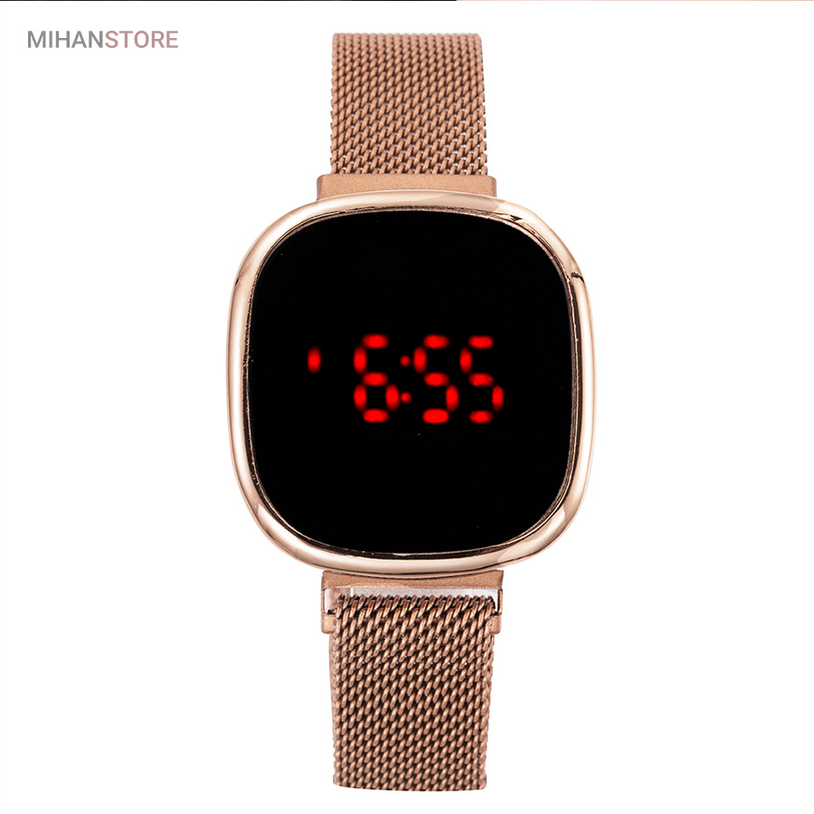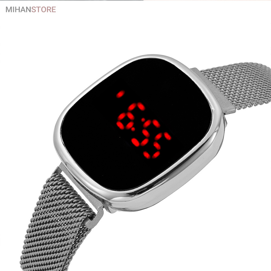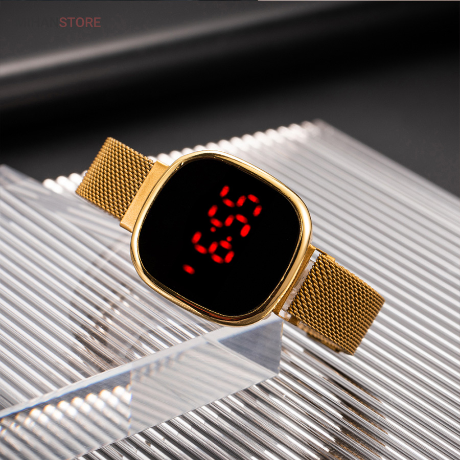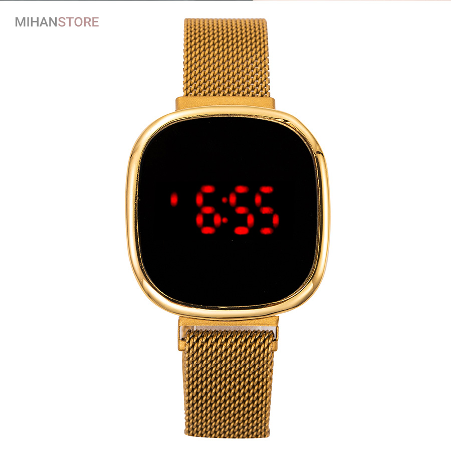 چراغ های LED قرمز رنگ ساعت را برای شما نمایش می دهد. صفحه نمایشی و مربع شکل ساعت در ابعاد 40 × 40 میلیمتر طراحی شده و ضخامت آن در قسمت بدنه 10 میلیمتر است. این ساعت