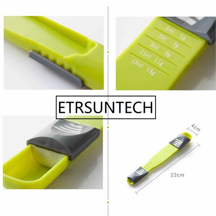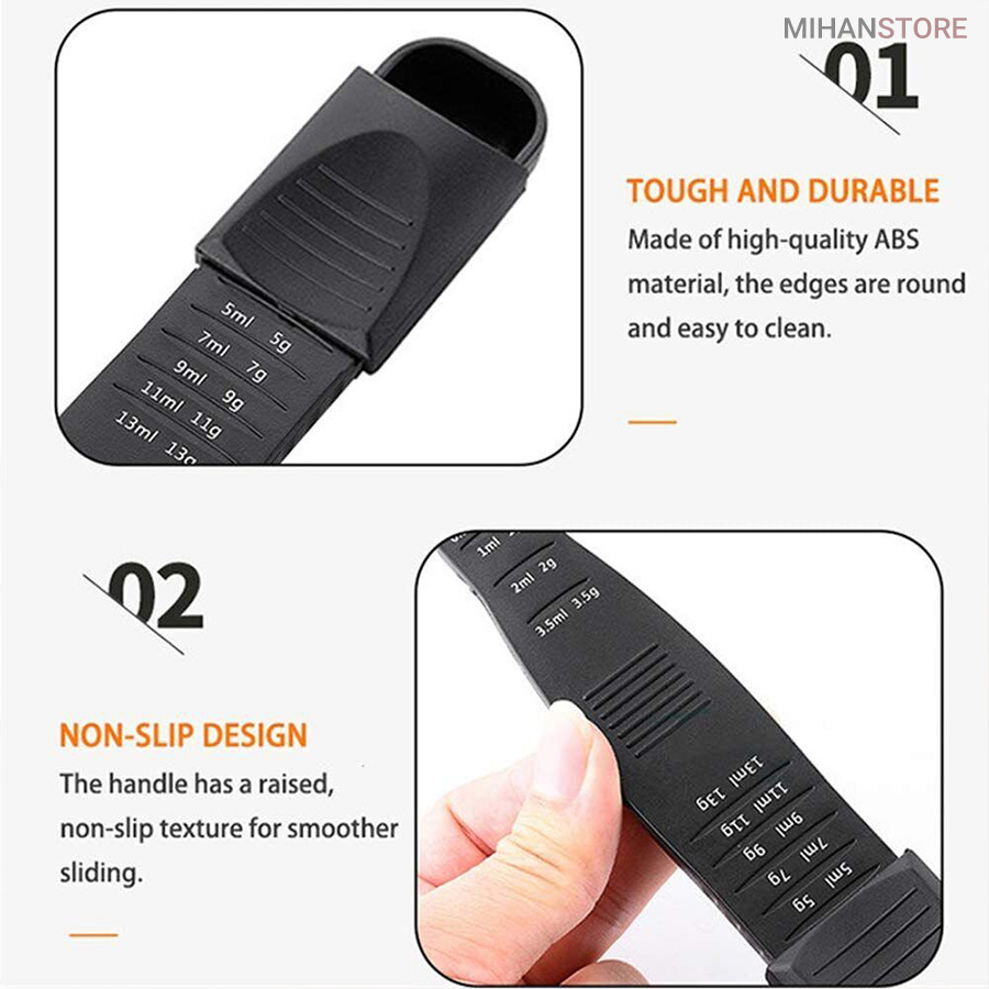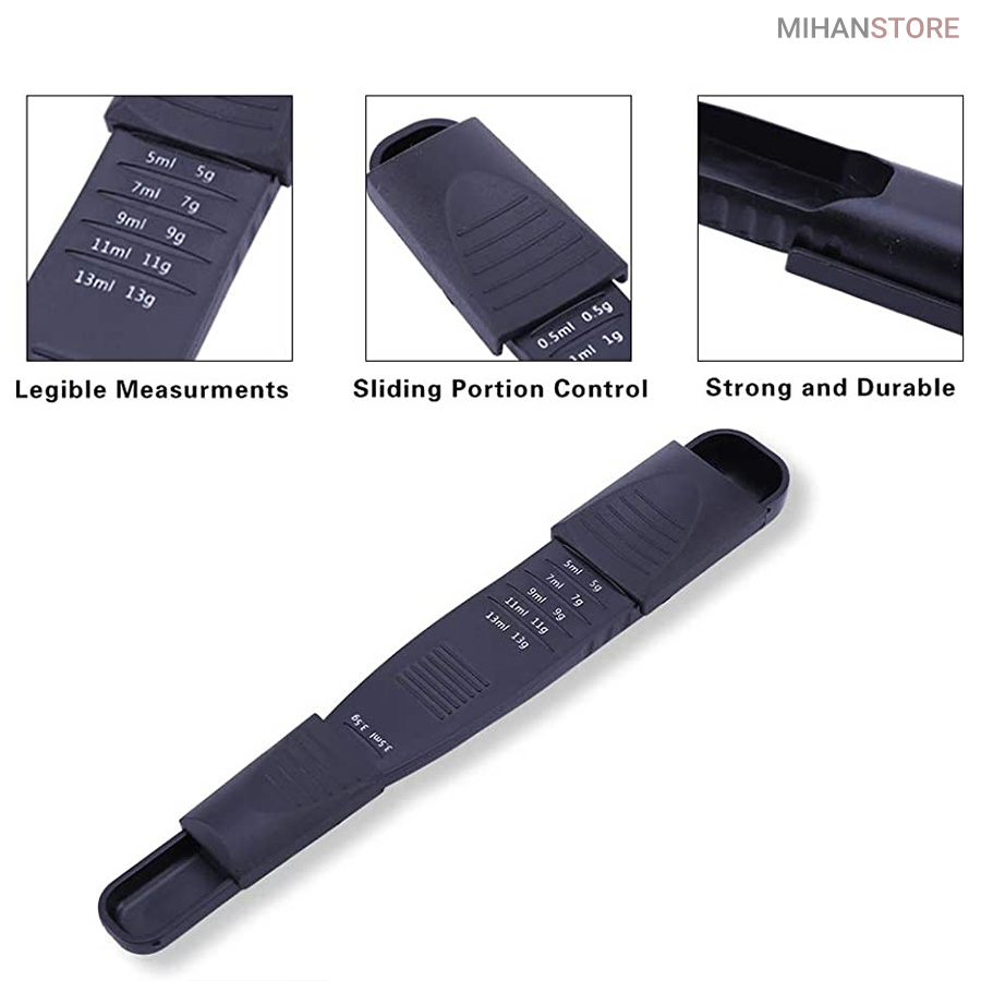 در این قسمت شما را با قاشق اندازه گیری پیمانه دو طرفه Spoon آشنا میکنیم این وسیله در آشپزی کاربرد زیادی دارد و برای اندازهگیری مواد اولیه از آن استفاده میشود. این پیمانه براساس یک واحد رسمی در پخت و پز شناخته شده و وسیله بسیار دقیقی در دستورالعمل غذاهاست. تمام سایز های مورد نیاز در یکجا فقط کافیه مخزن روی قاشق را با انگشت به صورت کشویی بالا و پایین ببرید تا به معیار مورد نظر برسید. از جنس پلاستیک درجه یک ساخته شده است ، شستشوی این پیمانه ها بسیار راحت می باشد و فضای خیلی کمی را اشغال می کند چون پیمانه اندازه یک قاشق است پس از این نظر خیالتان راحت است که فضای زیادی را اشغال نمی کند. از این محصول برای اندازه گیری مایعات و دارو ها نیاز می توانید استفاده کنید.
