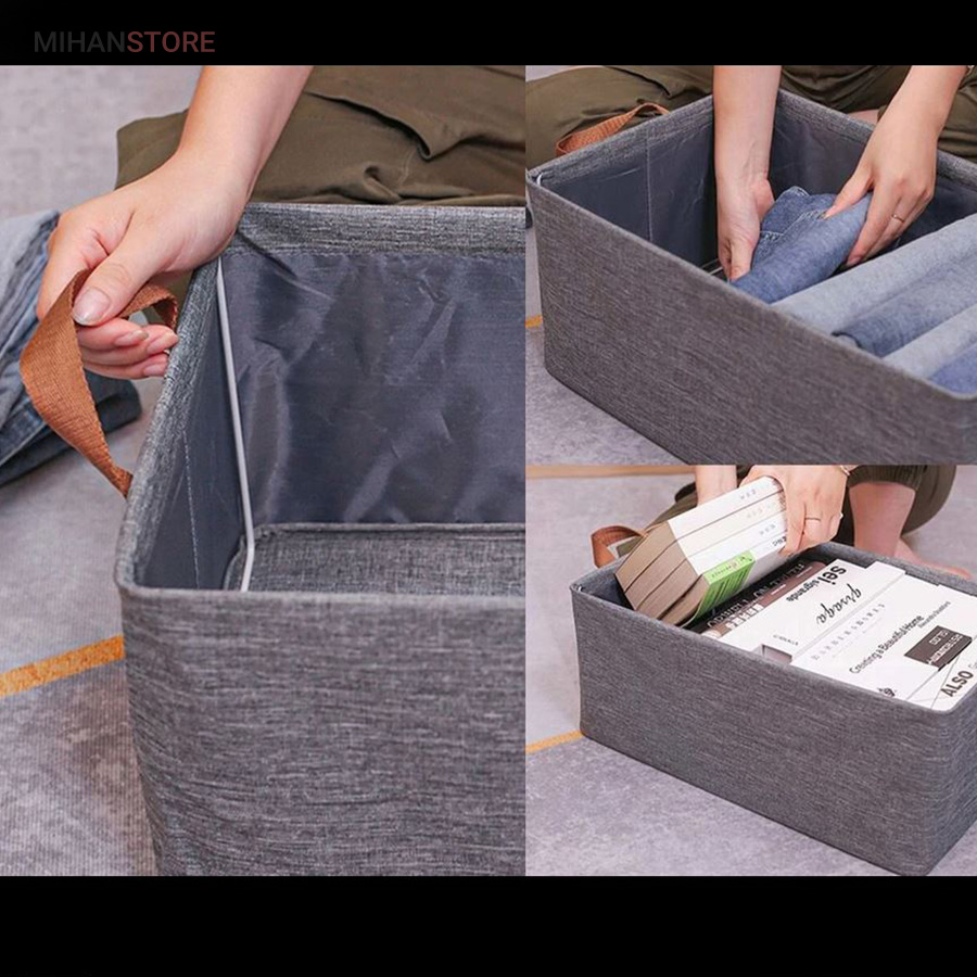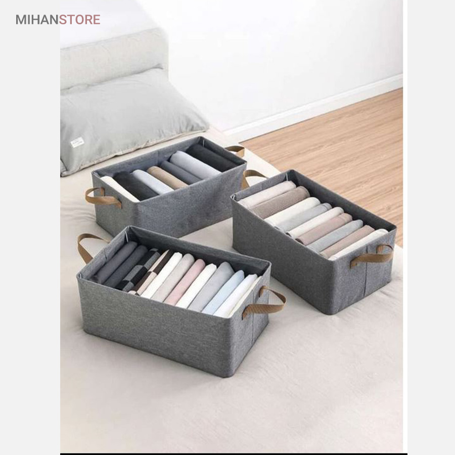 باکس لباس و شلوار داخل کمد یک جعبه پارچه ای بسیار مقاوم اما سبک و کم حجم به شکل مستطیل با ابعاد طول 40، عرض 25 و ارتفاع 24 سانتیمتر میباشد که دارای اسکلت داخلی جمع شونده است که علاوه بر حفظ شکل ظاهری باکس، استحکام بیشتری نیز ایجاد مینماید. باکس لباس و شلوار داخل کمد با ارتفاع مناسبی که حین باز کردن آن وجود دارد میتوان حجم قابل توجهی از لباس و پیراهن و شلوار را در داخل خود جای دهد. در صورت عدم استفاده از این باکس لباس اسکلت دار هیچ محدودیتی بابت جمع کردن و قرار دادن آن در جای مناسب نخواهید داشت و به گونه ای است که به راحتی تا میشود و میتوانید آن را در کشو و قفسه بگذارید. همچنین جنس پارچه ای ضخیم با قابل شستشو، مقاومت در برابر چروک، ساییدگی، پوسیدگی و تغییر رنگ از دیگر محسنات این باکس است. جنس این کالا پارچه برزنتی درجه یک ضخیم می باشد.