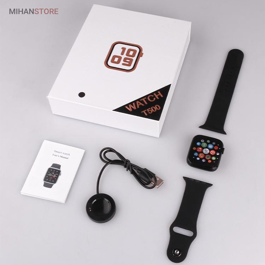 ساعت هوشمند مدل T500 یکی از بهترین مدل های موجود که به نسخه اصلی شباهت زیادی دارد میباشد. ساعت هوشمند مدل T500 دارای طراحی بدنه بسیار زیبا و ساده ای است که فرم مستطیلی دارد همراه با بند های سیلیکون که جذابیت ساعت را چندین برابر کرده است این ساعت کاملا لمسی میباشد که تمام صفحه نیست و حاشیه دارد. از مزیت های قابل ذکر این محصول میتوانیم با قابلیت اتصال به بلوتوث جهت همسان سازی با گوشی اشاره کنیم،ساعت هوشمند مدل T500و با وجود دارا بودن حسگر شتاب سنج،قابلیت رد تماس،تنظیم هشدار روزانه،ژیروسکوپ و شمارنده ضربان قلب،تعیین اهداف ورزشی و..جذابیت ساعت را بیشتر کرده است. همچنین این ساعت به تمامی دستگاه های اندرویدی وIos متصل خواهد شد،این گجت هوشمند توسط یک کابل مغناطیسی شارژ میشود.