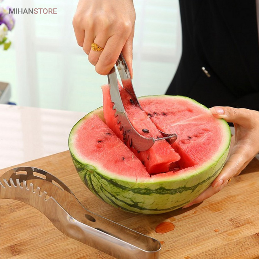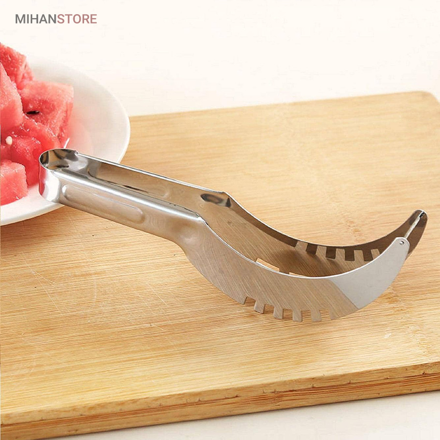 از برش زن هندوانه با طراحی زیبا و خاص علاوه بر برش هندوانه می توان برای میوه هایی نظیر خربزه ، گرمک ، طالبی و … هم استفاده کرد. با توجه به کاربرد این اسلایسر هندوانه به راحتی میوه را چاقو بزنید و آن را جدا کنید به طوری که ابعاد آن یکسان است. کاربرد این محصول به گونه ای است که در قسمت جلویی آن یک تیغه قرار دارد که میوه را به راحتی برش می زنید و آن را جدا کنید. ویژگی های اسلایسر هندوانه جنس مواد به کار رفته جهت ساخت بدنه اصلی هندوانه قاچ کن از ورقه استیل ضد زنگ می باشد که قابلیت برندگی بسیار خوبی دارد.