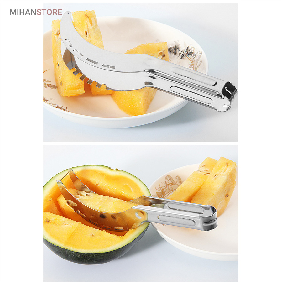 شکل ظاهری این اسلایسر شبیه به داس بوده و مانند یک انبر کنار همدیگر قرار گیرفته و همانطور که اشاره شد در انتهای آن یک تکه فلز یا تیغه به هم متصل شده تا در حین برش کاملا یک دست و یک شکل شود. از این اسلایسر هندوانه می توانید در سفر هم استفاده کنید. ابعاد در نظر گرفته شده برای برش زن هندوانه 25 × 5 سانتی متر است. وزن سبک، شست و شوی راحت و آسان از دیگر مزیت های این لوازم آشپزخانه کاربردی محسوب می شود.