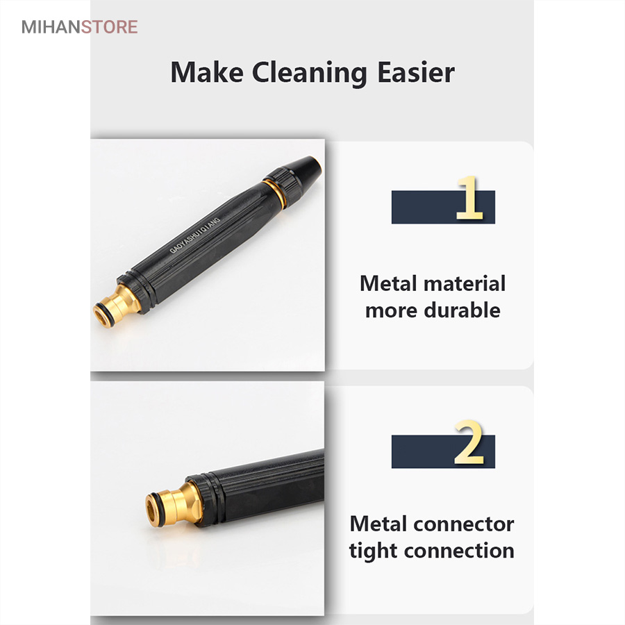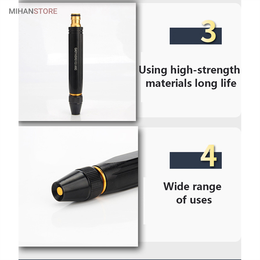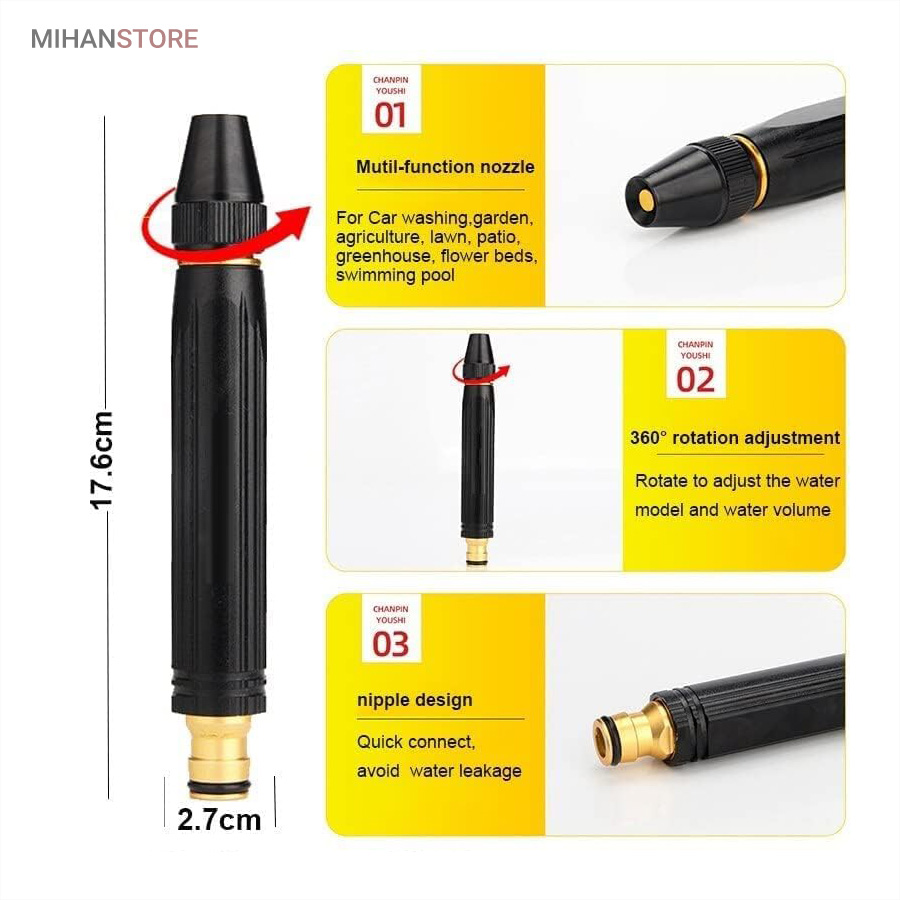 شما می توانید با استفاده از این نازل کارواش دستی را به کمک یک بست به شلنگ متصل کرده و از نتیجه آن لذت ببرید. معمولا از این کارواش دستی برای آبیاری باغ، شستن ماشین ها، چمن زار، ایوان، چمن ها، گلها و تمیز کردن حمام، آشپزخانه، بالکن، راهرو، فرش و خیلی موارد دیگر استفاده می شود.برای ساخت کارواش خانگی jet از آلیاژ آلومینیوم در بدنه آن استفاده شده است که برای جلوگیری از پوسیدگی و افزایش مقاومت در برابر آب بسیار با کیفیت می باشد. همچنین دارای مقاومت بالا برای جلوگیری از نشت آب، مقاوم در برابر زنگ زدگی حتی در استفاده طولانی مدت می باشد که بسیار بادوام تر از محصولات مشابه خود می باشد.حالت های آب متعددی برای رفع هر نیاز در شست و شوی آبی وجود دارد، مانند ماشین، پیاده رو، پاسیو، ناودان، عرشه، خانه و هر مکانی. انواع حالت ها به صورت کاملا انتخابی و فقط با پیچاندن بخش ابتدایی این نازل، که حالت پیچی دارد ، می توانید این حالت ها را تغییر دهید و استفاده کنید.با قابلیت سری پیچی قابل تنظیم می توانید جریان آب انعطاف پذیر و قابل تنظیم در این کارواش داشته باشید. به عبارت دیگر می توانید از حالت حمام، حالت آبپاش و حالت جت و چندین حالت دیگر استفاده کرده و به کمک نازل قابل تنظیم که در ابتدای کارواش قرار داده شده است، لکه های مختلف را شستشو داده و در مصرف آب صرفه جویی کند.