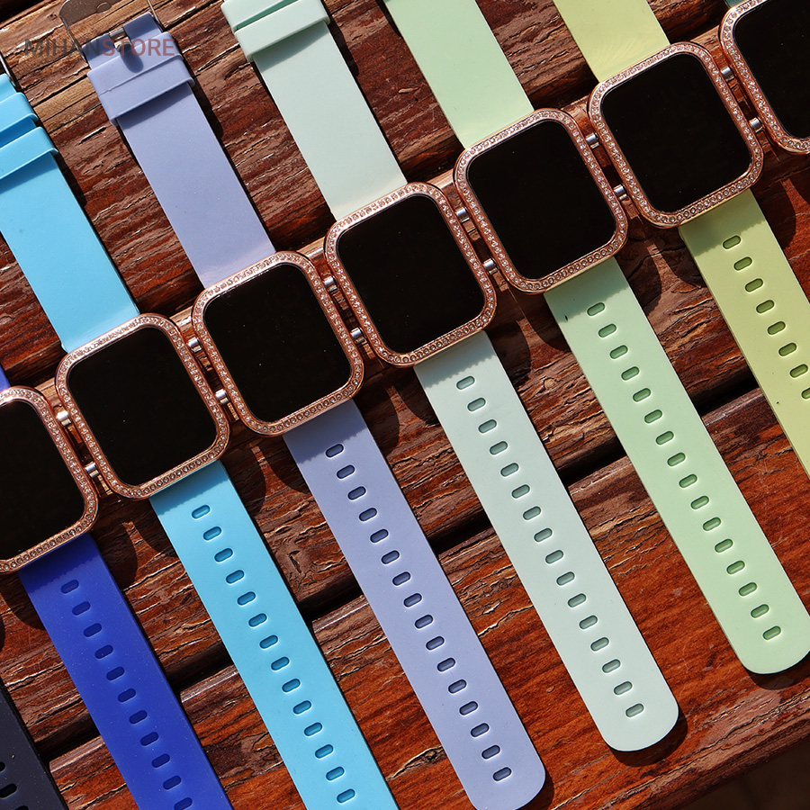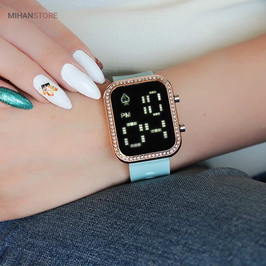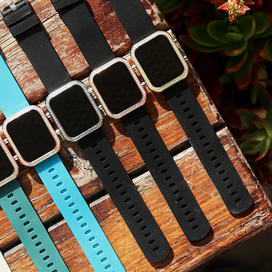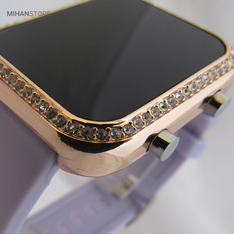 است.نگین های زیبا طراحی شده دور بدنه ساعت جذابیت آن را دو چندان کرده. این ساعت دارای وزن سبک است و سنگینی زیادی روی مچ دست شما ندارد.صفحه بسیار زیبا و شفاف که با لمس دکمه کنار ساعت صفحه نمایش به شکلی زیبا پدیدار میشود، مزیت جالب