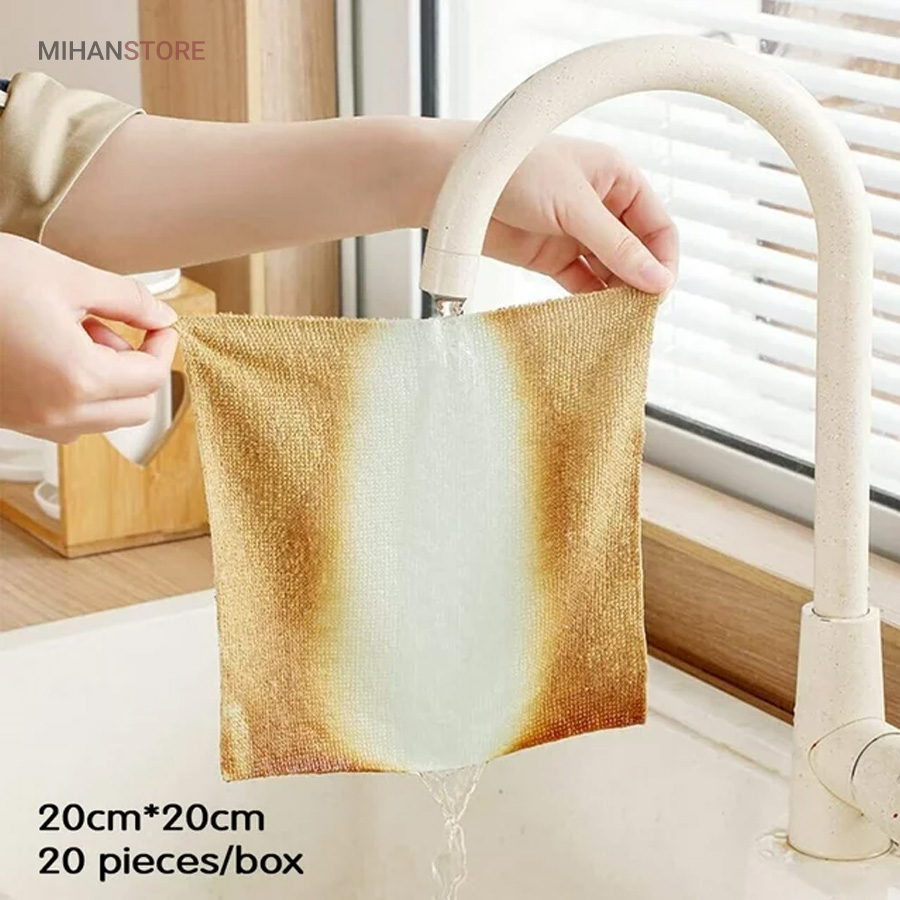 دستمال حوله ای آشپزخانه میکروفایبر 20 عددی مناسب شستشو و آبگیری ظروف و سطوح داخل آشپزخانه با قدرت جذب بسیار بالا، بدون پرزدهی و شستشوی راحت و همچنین قابل استفاده برای تمیز کردن صفحه موبایل، مانیتور، تلویزیون و خودروی شما، بدون ایجاد خش هیچ لکه ای را به جا نمی گذارد.این دستمال ها در رنگبندی های متنوع در یک پک کاملا بهداشتی و زیبا موجود می باشد. که به عنوان دستمال سفره و دستمال کودک نیز قابل استفاده است.همچنین این محصول با فناوری میکروفایبر تولید شده است که قابلیت جذب سریع آب و خاصیت الکترواستاتیک (ضد پرزدهی) و همچنین نرمی الیاف برای صفحه نمایش ها را دارا می باشد.سایز دستمال حوله ای میکروفایبر 20 سانتی متر در 20 سانتی متر می باشد. محصولات نظافتی و شستشو جزیی از ابزار جدانشدنی یک خانه مرتب و عالی است.پارچه تمیز کننده جادویی فوق العاده نرم رنگ، شیشه یا هر سطحی را خراش نمی دهد. با جذب فوق العاده، مقاوم در برابر محو شدن، قابل شستشو، قابلیت تمیز کنندگی قوی و تمیز کردن آسان.دستمالها از مواد میکروفیبر دو طرفه ضخیم با چگالی بالا با پرز کم و انقباض کم ساخته شدهاند، به خوبی ساخته شدهاند، بادوام هستند و میتوانند بارها مورد استفاده مجدد قرار گیرند.به سادگی حوله ظرف را برای چند لحظه بدون افزودن مواد شوینده در آب خیس کنید، سپس دستمال تمیز کننده را فشار داده و شروع به تمیز کردن کنید.پارچه نظافتی آشپزخانه چند منظوره است، به آشپزخانه محدود نمی شود، می توانید از آن برای تمیز کردن کابینت حمام، آینه، دیوار، توالت و غیره استفاده کنید. البته می توان از آن برای تمیز کردن پنجره، شیشه، میز استفاده کرد.