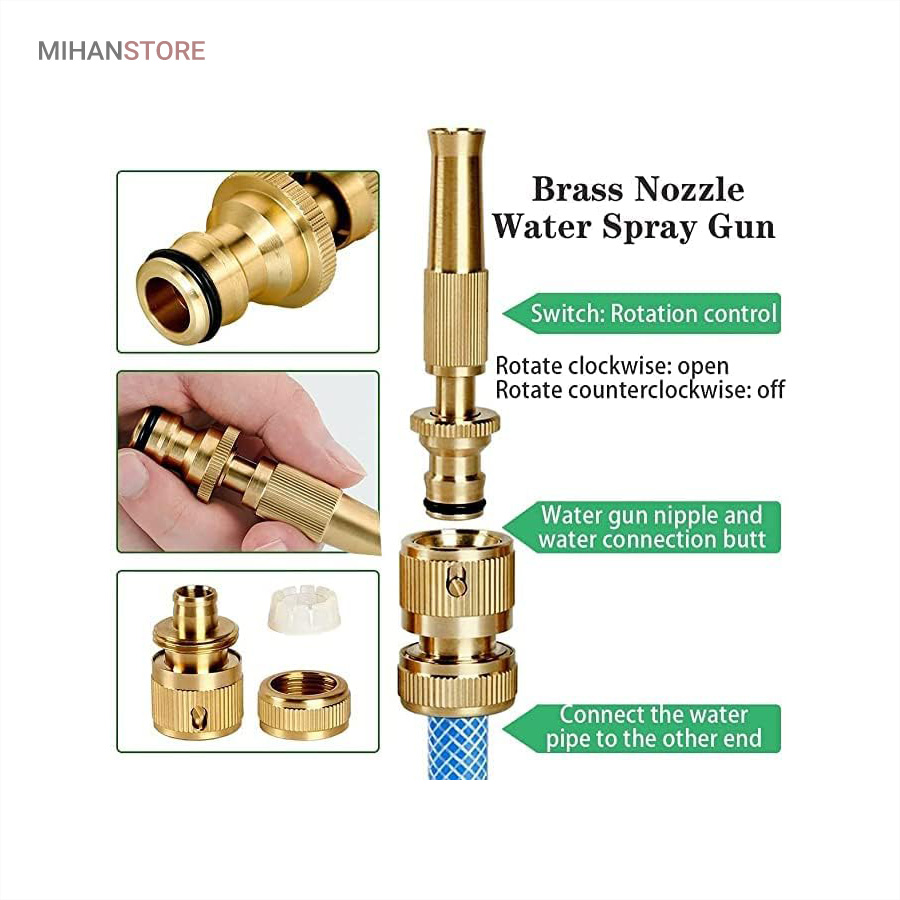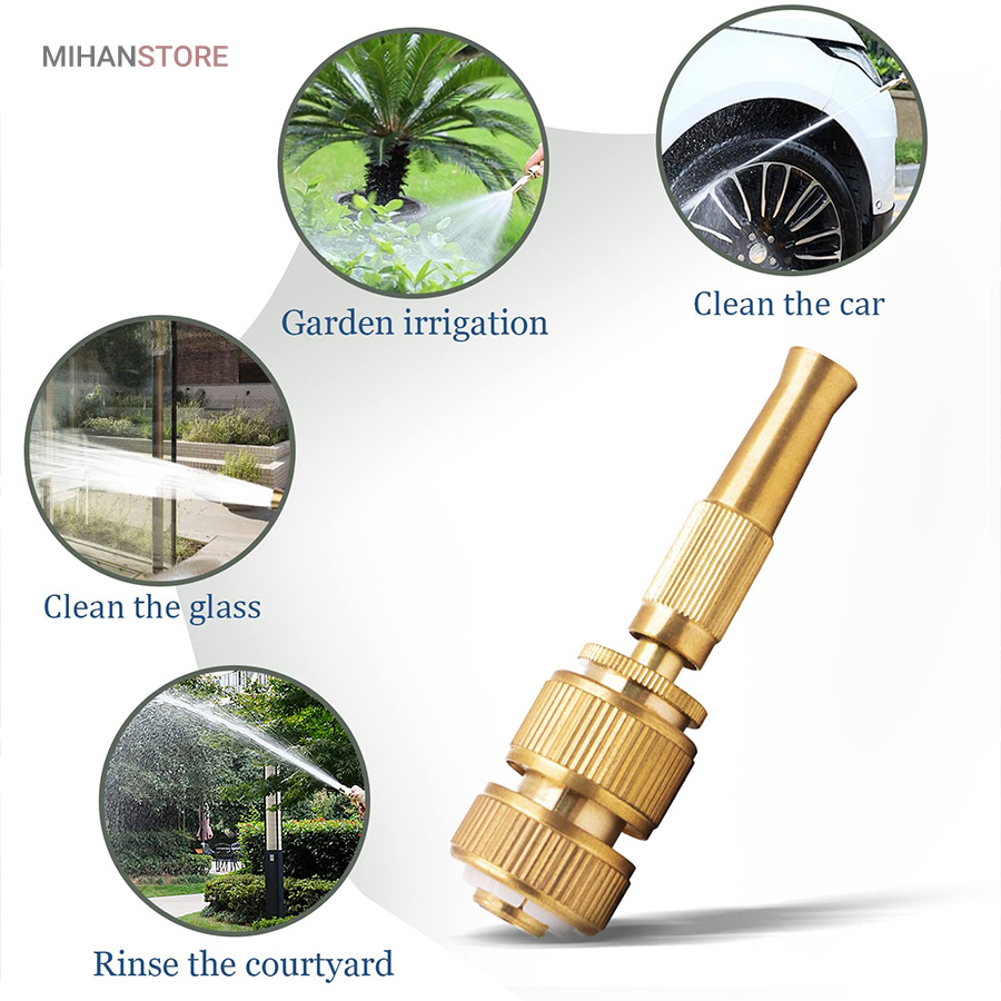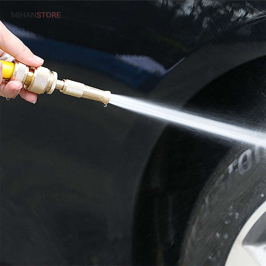 کارواش سر شلنگی برنجی یک گجت کاربردیست که با اتصال به سر شلنگ تبدیل به یک کارواش شلنگی پرقدرت شده که می تواند فشار آب را تا حدودی تقویت کند تا به سادگی بتوانید مانند یک کارواش از آن استفاده کنید و نگران فشار پایین آب نباشید.اگر از دسته افراد علاقه مند به باغبانی، گل و گیاه کاری، کشاورزی، شستن ماشین و… هستید، دیگر نگران نباشید، با این محصول، بسیاری از مشکلات افرادی که در این شغل ها هستند را برطرف می کند.این سر شلنگ از جنس برنج ساخته شده است که در برابر آب و هوا مقاوم است و اصلا زنگ نمی زند. همچنین دیگر نیاز نیست به دنبال کارواش های گران قیمت باشید، این سر شلنگ مشکل شما را حل خواهد کرد. کافی است سر شلنگ را به شلنگ معمولی متصل کرده و یک کارواش خانگی داشته باشید. از دیگر ویژگی های این محصول قابلیت تنظیم شدن آن است، یک نازل دارد که آب را از مدل سوزنی تا پخش شونده به صورت کامل تنظیم می کند.این سر شلنگ طوری طراحی شده که می توان برای شستشو خانگی ماشین، کف حیاط، آبیاری گل و گیاه و باغچه از آن استفاده کرد. این آب پاش طوری ساخته شده که به گل و گیاه آسیب وارد نمی کند.اگر حیوان خانگی دارید، می توانید این آب پاش را تنظیم کرده و حیوان خانگی خود را به راحتی بشویید.
