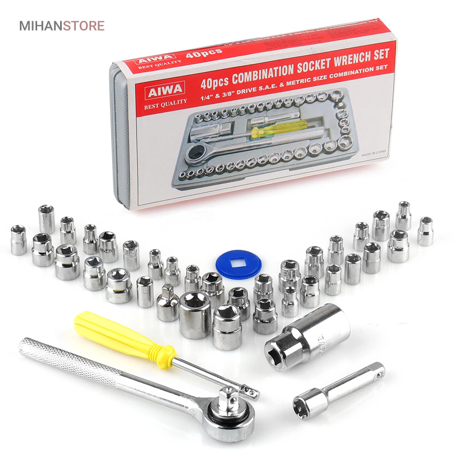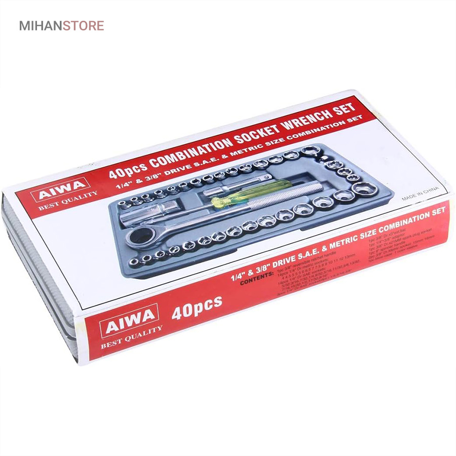 ویژگی های مجموعه 40 عددی آچار بکس AIWA: