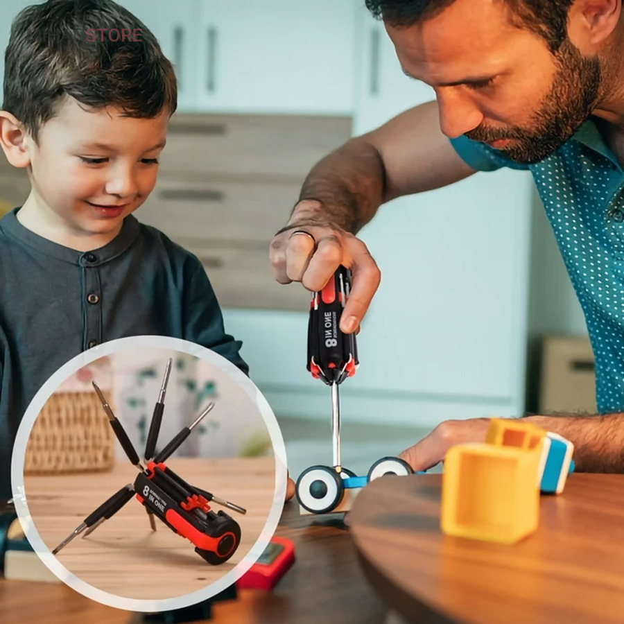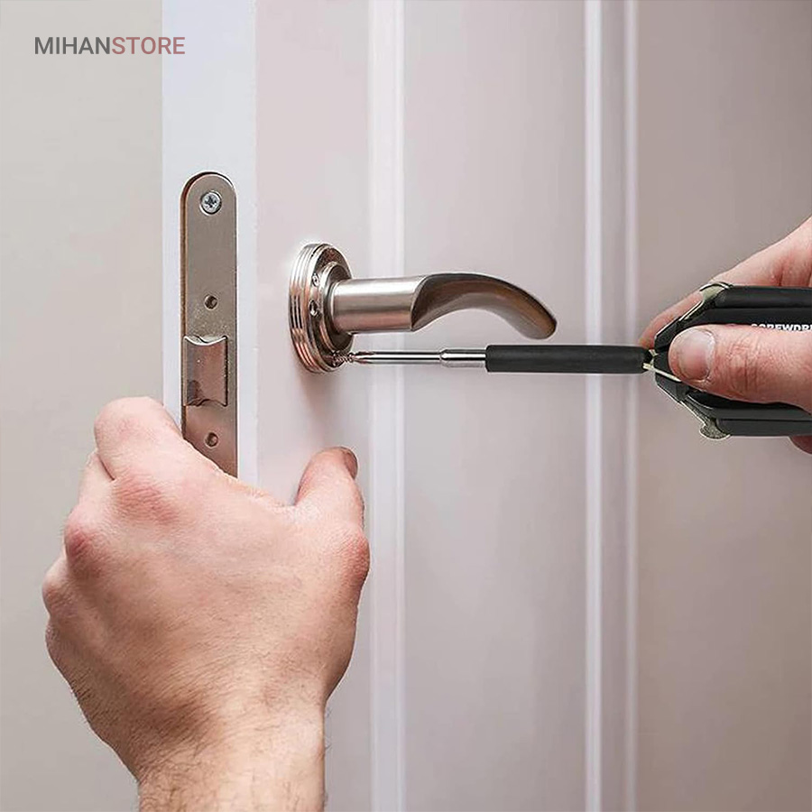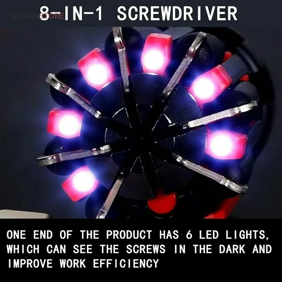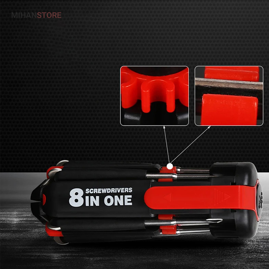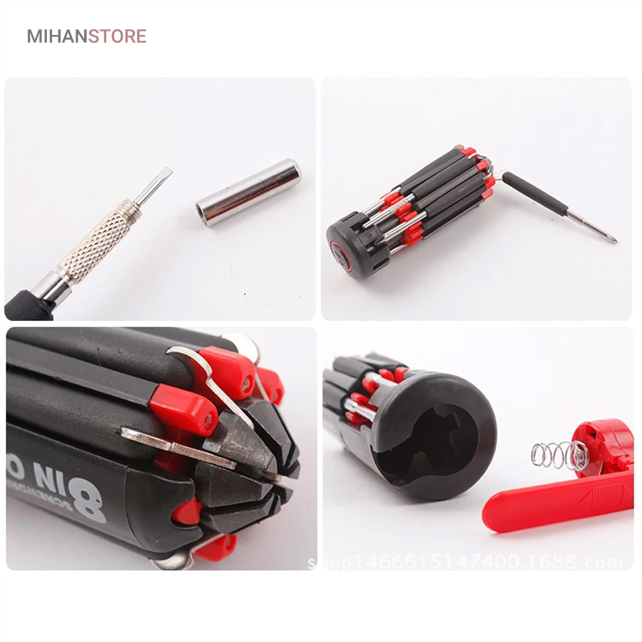 یک پیچ گوشتی به جای 8 پیچ گوشتی ، هشت پیچ گوشتی همه کاره . پیچ گوشتی چند کاره و چراغ دار . نوع درجه یک ، قابل استفاده داخل اتومبیل ، منزل و محل کار با 8 سر متفاوت مناسب برای تمام کارهای فنی . این پیچ گوشتی چراغ دار از جدید ترین و مناسب ترین پیچ گوشتی ها بوده که تابحال وارد بازار شده که به جای استفاده از 8 پیچ گوشتی شما می توانید از یک پیچ گوشتی 8 سر استفاده کنید.این پیچ گوشتی قابل حمل ، بدون نیاز به جعبه می باشد. پیچ گوشتی 8 سر جادویی چراغ دار قابل استفاده در محیطهای تاریک.پیچ گوشتی چند کاره و چراغ دار به همراه چراغ قوه برای کار کردن در محیط های تاریک نیز مناسب می باشد.