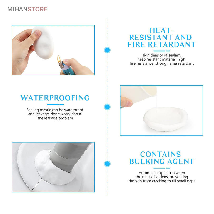 خمیر آب بندی و پر کننده منافذ از یک ماده مهندسی سازگار با محیط زیست ساخته شده است که ضد آب و مقاوم در برابر خوردگی است. در نتیجه، چگالی بالایی دارد و می تواند به طور موثری از ورود حیوانات جلوگیری کند. علاوه بر این، چسبندگی خوب آن، آن را برای وصله کردن سوراخ ها عالی می کند.