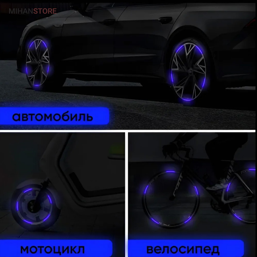 محصولی است که با طراحی منحصر به فرد خود، زیبایی و جذابیت خاصی به خودروهای شما میبخشد. به شکل برچسب چسبانده شده، به سادگی بر روی رینگهای چرخ نصب میشوند و در شب جلوهای خیرهکننده ایجاد میکنند. این محصول دارای 20 عدد برچسب نواری هست که برای 4 عدد لاستیک اتومبیل، پاسخگو هست.