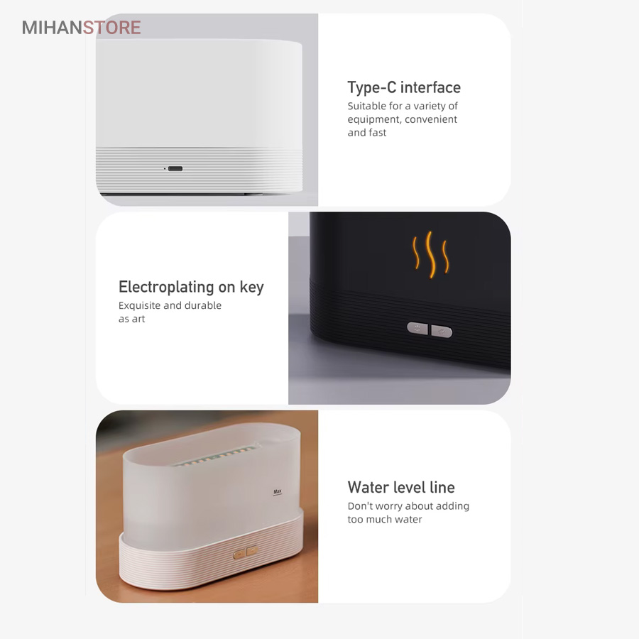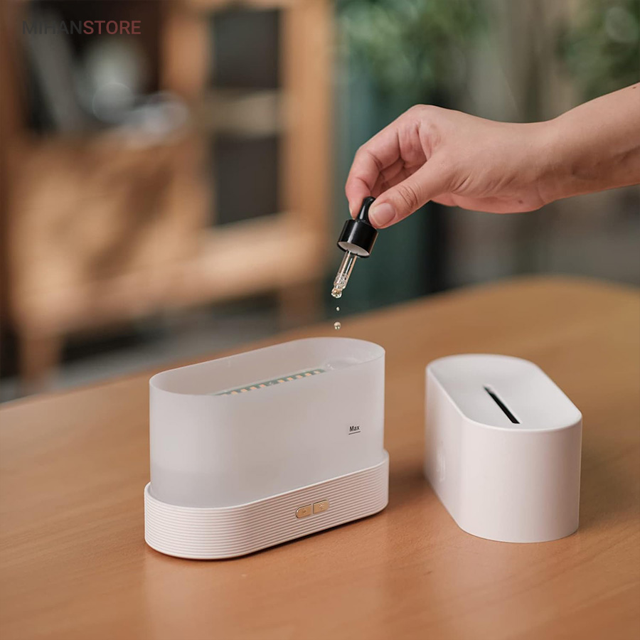 همچنین این گجت هوشمند با استفاده از یک اداپتور به برق مستقیم متصل و در گوشه ای ازمنزل شما قرار می گیرد، همچنین دارای تراشه هوشمند است برای خاموش کردن دستگاه بخور سرد طرح شعله آتش در زمانی که اب مخزن تمام شده است.همچنین این مرطوب کننده ی هوا علاوه بر این که یک بخور سرد است، یک چراغ خواب زیبا و همچنین اکسسوری جذاب و همچنین یک خوشبو کننده هوا هم محسوب می شود، زیرا شما با ریختن چند قطه از اسانس های میوه ای و گل های خوشبو محیط اطراف خود را خوش بو می کنید.همچنین گنجایش مخزن این دستگاه بخور برای ریختن اب 200 میلی لیتر است که می تواند تا چند روز برای شما جواب گو باشد، همچنین دارای وزنی معادل 326 گرم است که باعث می شود قابلیت حمل راحت تری داشته باشد. همچنین دارای دو کلید جانبی برای تغییر مود و نور هم در ان تعبیه شده است.