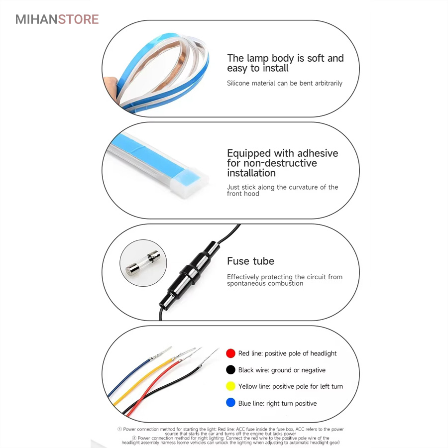 مصرف کم انرژی: به دلیل استفاده از تکنولوژی LED، این نوارها مصرف انرژی کمی دارند و به باتری خودرو فشار نمیآورند.
