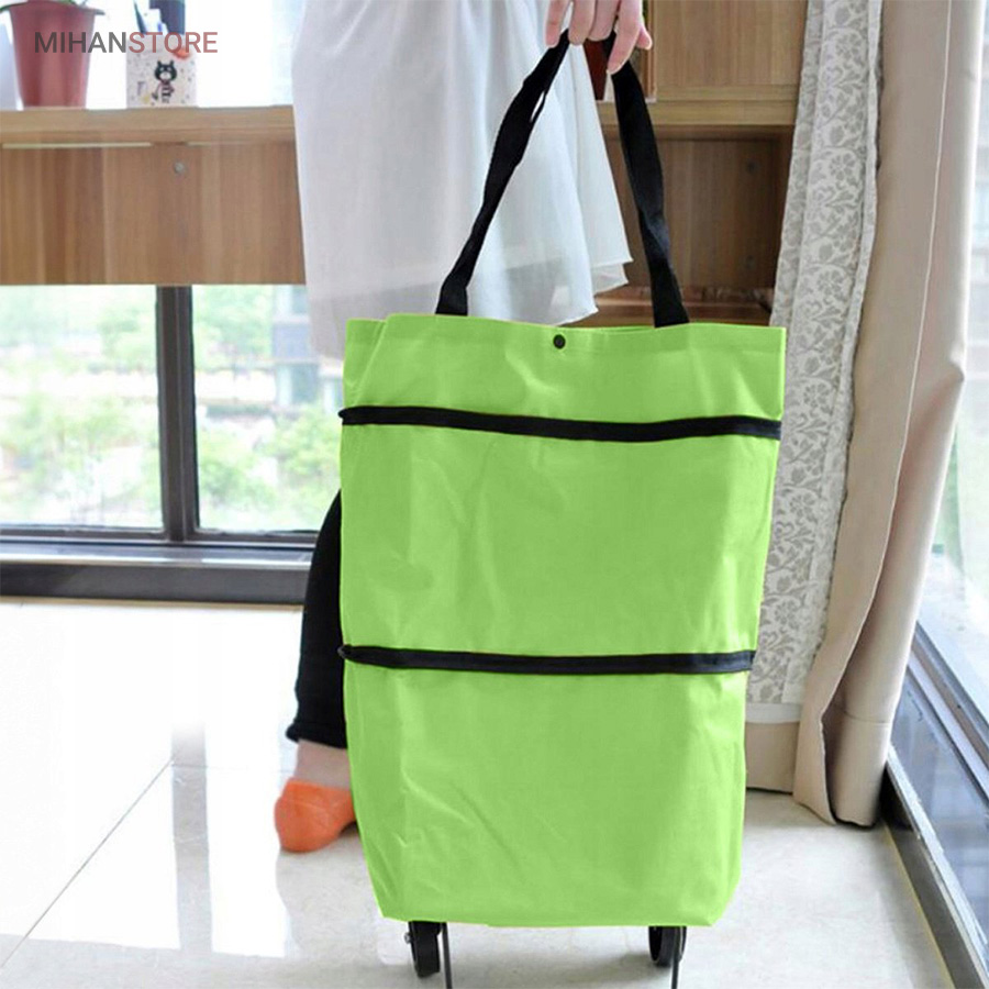 این کیف از جنس پارچه برزنتی ساخته شده و ضد آب، ضد پارگی، گرد و غبار و بادوام است که با طرح های رنگارنگ چاپ شده، شیک و مد روز است. چرخ های آن تاشو جهت حمل آسان می باشد، اندازه آن می تواند مانند یک کیف کوچک پس از تا کردن باشد. پارچه نایلونی با چگالی بالا باعث می شود ظرفیت باربری قوی داشته باشد. کیسه با ظرفیت زیاد می تواند بسیاری از چیزها را در خود جای دهد، مانند لباس، میوه، سبزیجات، کفش و غیره.