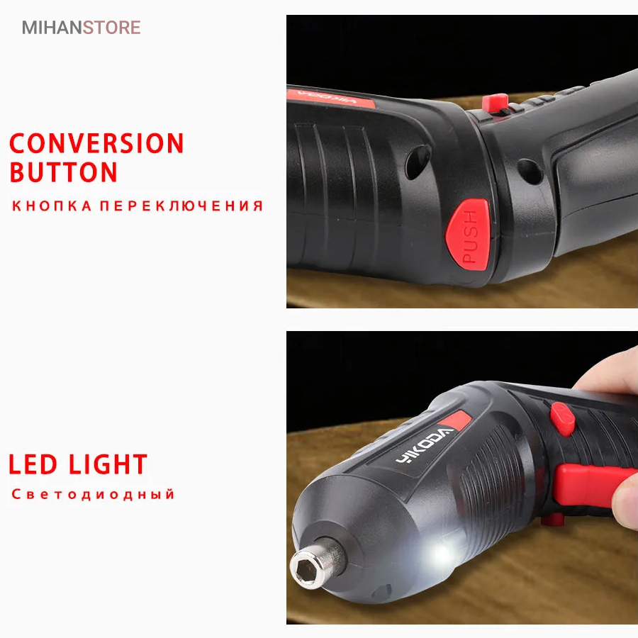 این پیچ گوشتی شارژی تفنگی 4/5 ولت، مجهز به باتری قوی جهت اثربخشی بیشتر و عمر طولانی تر است. این دستگاه قابلیت چرخش بدنه دارد به طوری که به صورت مستقیم هم قابل استفاده است. این محصول دارای 46 قطعه کاربردی میباشد که از مواد اولیه مناسب ساخته شده اند. این محصول برای استفاده در صنایع الکترونیک، کامپیوتر، مکانیک و مصارف عمومی مناسب است. پیچ گوشتی شارژی پوش مجهز به سیستم ابزارگیر منحصر به فرد با گیرایی بسیار قوی حین کار است، شامل چراغ LED مجزا است تا بتوان از آن در محیط کم نور و تاریک استفاده نمود و در آخر مجهز به نگهدارنده سریع پیچ گوشتی یا مگنت جهت کاربری سریع و آسان است. این دستگاه دارای کابل شارژ نیز میباشد. برای شارژ این دستگاه میتوانید از تمام شارژر های USB دار مانند موبایل، کامپیوتر و .... استفاده کنید.