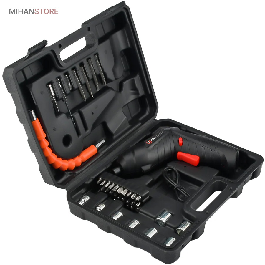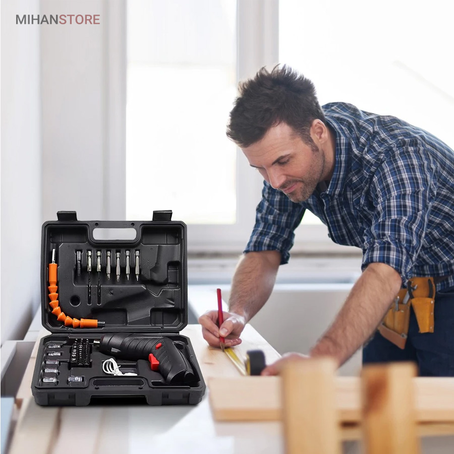 دریل و پیچ گوشتی شارژی 47 تکه قابل شارژ و مجهز به یک باتری لیتیومی 1800 میلی آمپر ساعتی است که عملکرد طولانی مدتی دارد و در صورت شارژ کامل می توان برای مدت طولانی از آن استفاده کرد. نازل مکش پیچ گوشتی برقی مغناطیسی است، می توانید به راحتی و به سرعت سری پیچ گوشتی های مختلف را تغییر دهید.