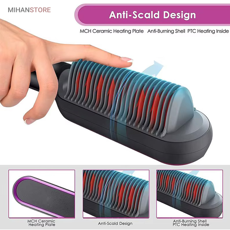 هنگامی که شما تصمیم به استفاده از برس حرارتی گرفته اید بهتر است بدانید که چندین مزایای مختلف را شامل شده اید. مانند: استفاده ی راحت و آسان، وقت گیری کمتر و صافی مو در کوتاه ترین زمان ممکن، صاف شدن مو بی آنکه مو وز کند، کاربرد های متفاوت، حمل آسان و از همه ی این موارد مهم تر، آسیب رسانی کمتر به مو!یکی از بهترین کارکرد های برس حرارتی صاف کننده مو STRAIGHT COMB حداقل آسیبی است که به مو می رساند چرا که مانند برس تنها روی موها کشیده می شود و حرارت درست و صحیحی به موها می دهد که باعث سوختن و آسیب رساندن به مو نخواهد شد.