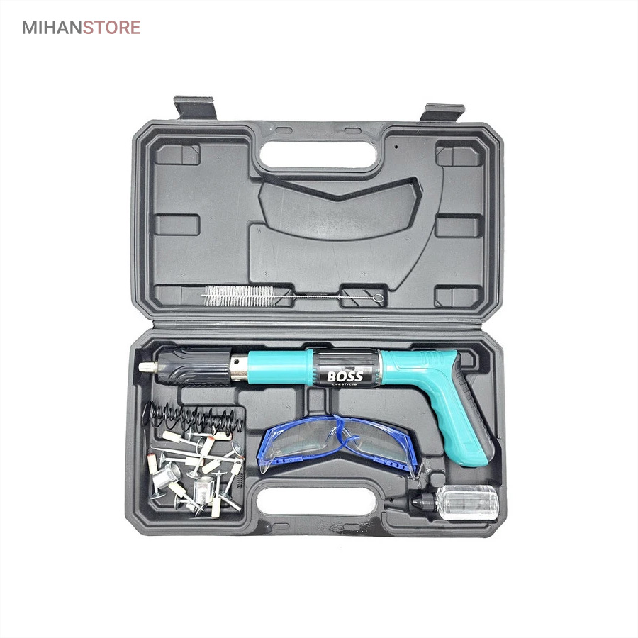 میخکوب دستی چاشنی خور Boss امکان استفاده در بتن، پلاستیک، ورق های نازک فلزی، چوب و ... را دارد. قابلیت استفاده میخ تا 5 سانتیمتر را دارد، کارکرد ساده و قوی دارد . بدون نیاز به چاشنی انفجاری جداگانه می باشد. بسیار سبک، کم حجم وقابل حمل می باشد. محصولی جدید و با تکنولوژی به روز جهت جایگزینی برای میخکوب های والتی، کامرکس و ... می باشد. دارای کیف حمل، عینک، فرچه، فنر یدک می باشد تفنک میخکوب ابزاری است مشابه تفنگ بادی. تفنگ میخکوب بتن برای اتصال پلیت ها و صفحات مختلف به بتن می باشد. البته مصارف دیگری از جمله اتصال انواع توری های مشبک و غیره به صفحه های بتنی و مصالح ساختمانی را نیز دارد. این تفنگ ها به وسیله چاشنی میخ موجود در خان تفنگ را با شدت به سمت هدف شلیک کرده و واشری که بر روی میخ قرار دارد صفحه را بر روی بتن نگه می دارد. با قرار دادن چاشنی مخصوص در داخل دستگاه و قرار دادن میخ در محل تعیینشده، میتوانید از این ابزار استفاده کنید. چاشنیهایی که برای این محصول در نظر گرفتهاند در دو نوع و برای کوبیدن میخ در فلز یا بتن هستند. نوع میخی که برای این دستگاه مورد استفاده قرار میگیرد، از گونههای واشردار است. از این دستگاه در شغلهای مختلف که با چوب و فلز سروکار دارند، استفاده میکنند.