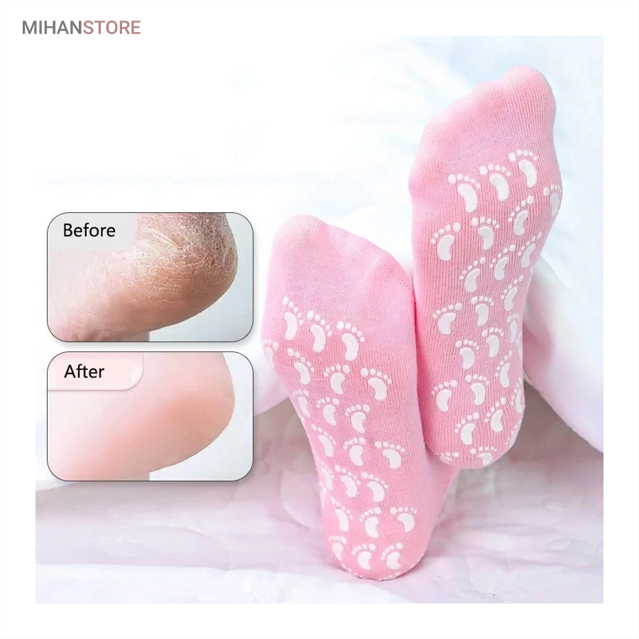 استفاده از جوراب پاپوش طبی مراقبت و ضد ترک پا Spa Gel Socks نه تنها باعث تسکین خشکی ترک پاشنه پا می شود، همچنین می تواند کل پوست پا را مرطوب کرده و ظاهری طبیعی و سالم به پاهای شما اهدا کند. جنس مواد بیرونی از پارچه فازی بسیار راحت بوده و این محصول قابل شستشو و قابل استفاده مجدد به دفعات زیاد می باشد. جوراب پاپوش طبی مراقبت و ضد ترک پا خاصیت جبران رطوبت از دست رفته در پوست و بازیابی کلاژن که می تواند پوست را مرطوب و زیبا کند را دارد. همچنین می تواند متابولیسم سلولی را تقویت کرده، پوست های ناراحت و خشن را تسکین دهد و هیچگونه تحریک پوستی ندارد.به جذب کامل محصولات مراقبت از پوست یا داروها کمک کرده و و اثر سفید کنندگی، مرطوب کنندگی پوست را تقویت می کند. استفاده مداوم می تواند باعث آزاد شدن مواد مغذی شده و به مبارزه برای پوست خشن، ترمیم پوست آسیب دیده، ترک خورده، جلوگیری از پیری زودرس، و بازیابی پوستی صاف و ظریف کمک کند.