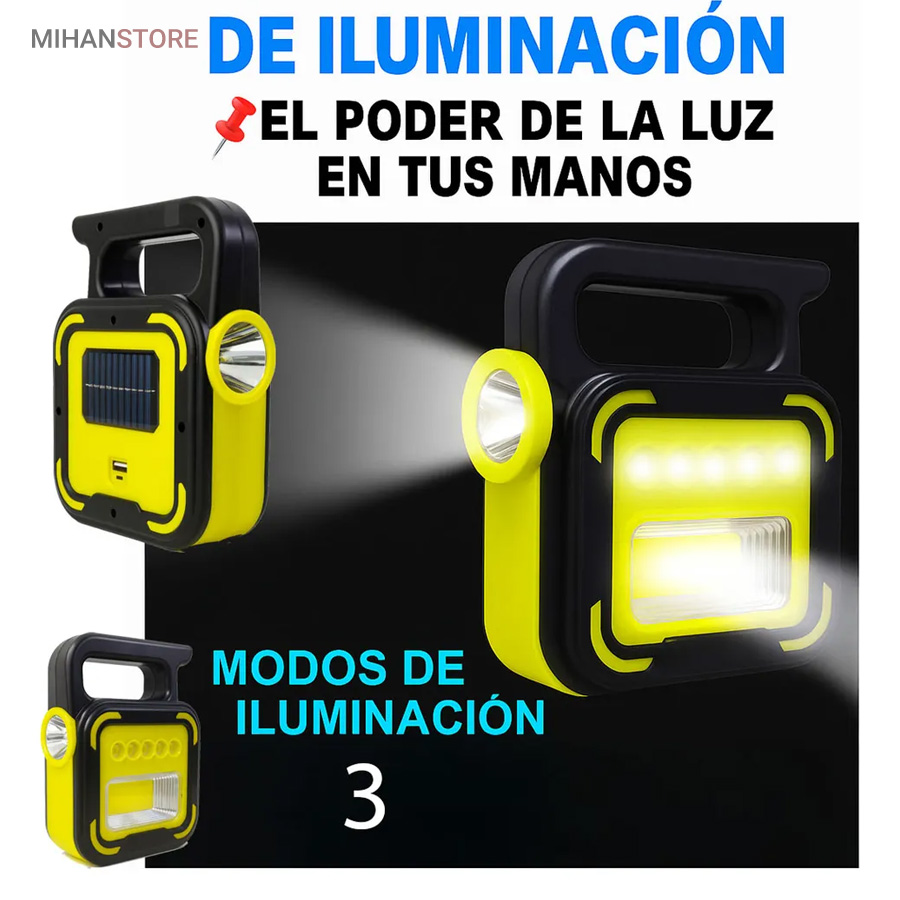 یک وسیله با چندکارایی جالب می باشد. جنس بدنه چراغ کار از ABS و مقاوم در برابر ضربه می باشد. چراغ و پروژکتور اضطراری دارای پاوربانک دارای 4 حالت نوردهی که شامل: چراغ قوه سفید و چراغ قوه آفتابی با نور زرد و چراغ جانبی قوی COB شش چراغه با نور قوی و چراغ جانبی کوچک میباشد. چراغ کار چند کاره دارای ویژگی هایی چون: دست گیره، قابلیت شارژ با برق شهری و نور خورشید، و خروجی USB برای شارژ موبایل می باشد.