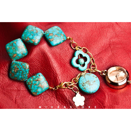 در طراحی این ساعت از سنگ های فیروزه تبتی