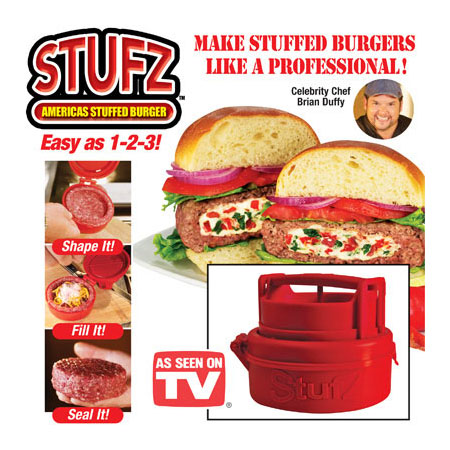 همبرگر زن Stufz یک دستگاه ساده می باشد که با قرار دادن گوشت چرخ کرده در داخلش آن را گود می کند و سپس می توانید هر مواد خوراکی که فکر می کنید به ذائقه شما، برگرتان رو خوشمزه تر می کند داخل آن بریزید. سپس با قرار دادن تکه رویی، همبرگر زن استافز بسته می شود تا مواد داخل آن به بیرون نریزد. هم اکنون برگر شکم پر یا در اصل همان Stuffed Burger آمریکایی شما آماده است.