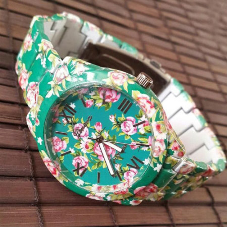 این ساعت یکی از جدیدترین و دوست داشتنی ترین ساعت های سال می باشد که دارای طراحی بی نظیر و خلاقانه ای بوده و توانسته است با عرضه خود به بازار طرفداران بی شماری را در سراسر جهان جذب کند. این ساعت دارای بند زیبا و طرح دار می باشد که بصورت شگفت انگیزی خودنمایی میکند و گل های موجود بر روی این ساعت زیبایی آن را دوچندان میکند. این ساعت در رنگ بندی و طرح های مختلف با کیفیت فوق العاده بالا عرضه شده است. اگر طرح یا رنگ خاصی مد نظر شما می باشد هنگام ثبت سفارش می توانید در قسمت پیغام ذکر کنید.