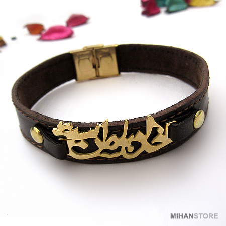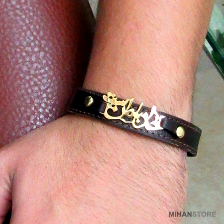 دستبند چرمی طرح خدا با من است با دو رنگ قهوهای و مشکی و پلاک نازک طلایی رنگ خدا با من است نمونهای از زیورهای ساده و در عین حال پرطرفدار از جانب آقایان و خانوم ها است که با اکثر رنگهای لباس همخوانی داشته و در عین حال متفاوت دیده میشود. این دستبندها مناسب ترین هدیه برای زوج های جوان است.