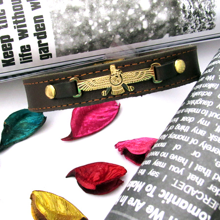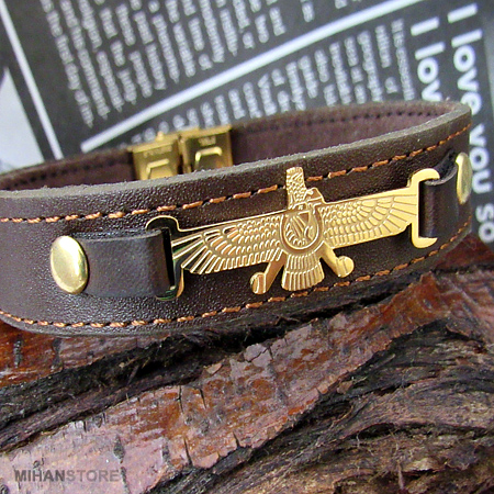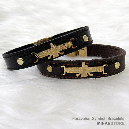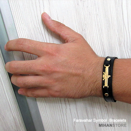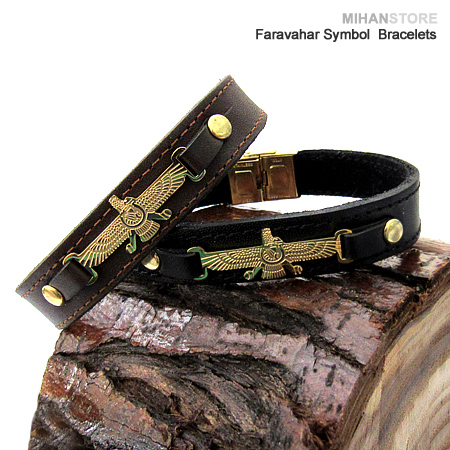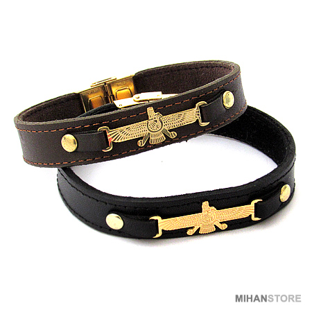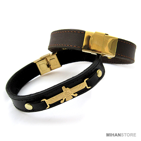 دستبند چرمی طرح فروهر با دو رنگ قهوهای و مشکی و پلاک نازک طلایی فروهر نمونهای از زیورهای ساده و در عین حال پرطرفدار از جانب آقایان و خانوم ها است که با اکثر رنگهای لباس همخوانی داشته و در عین حال متفاوت دیده میشود. این دستبندها مناسب ترین هدیه برای جوانان شیک پوش است.