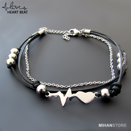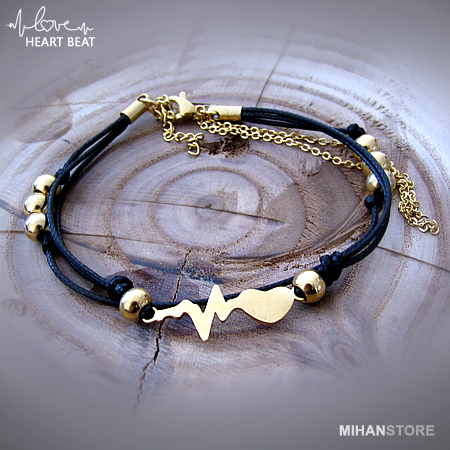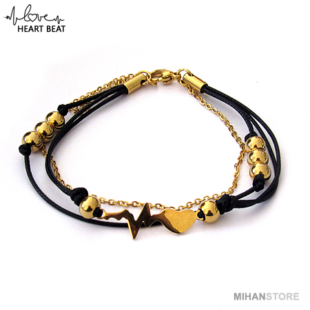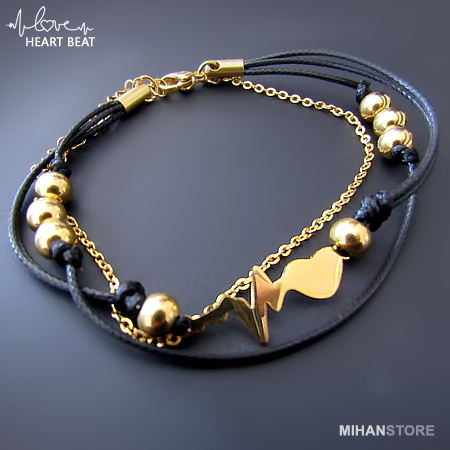 دستبند چرم و استیل طرح ضربان قلب با دو رنگ طلایی و نقره ای نمونهای از زیورهای ظریف و در عین حال پرطرفدار از جانب آقایان و خانوم ها است که با اکثر رنگهای لباس همخوانی داشته و در عین حال متفاوت دیده میشود. این دستبندها مناسب ترین هدیه برای کسی است که قلب شما برای وی می تپد!
