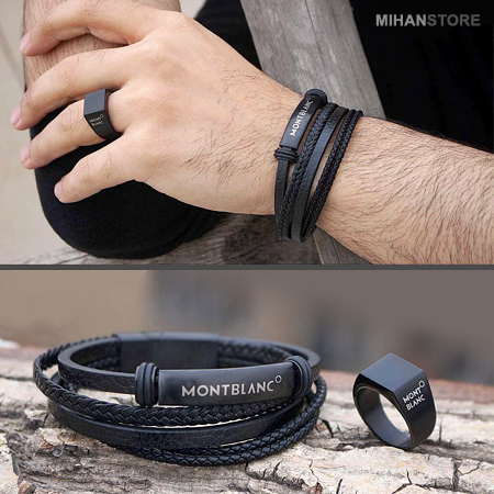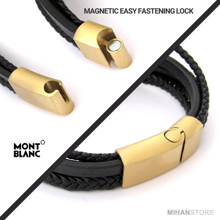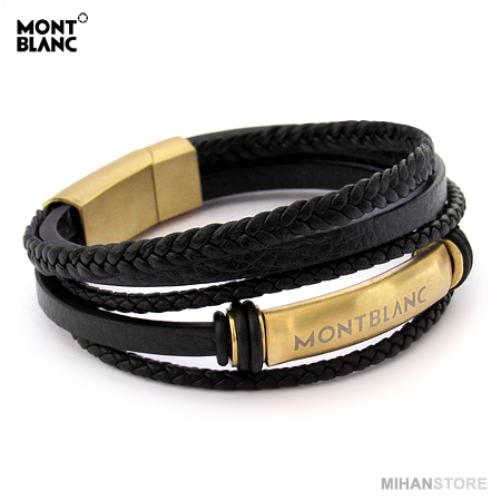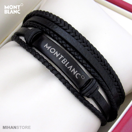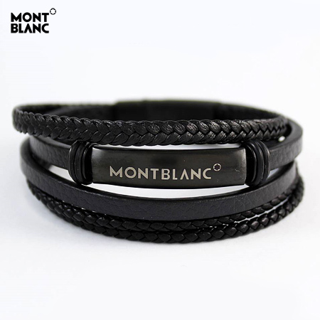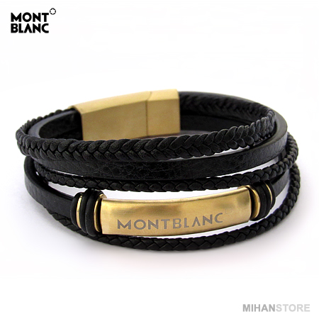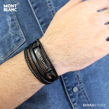 دستبند چرم طرح Montblanc نمونهای از زیورهای ظریف و در عین حال پرطرفدار از جانب آقایان و خانم ها است که با اکثر رنگهای لباس همخوانی داشته و در عین حال متفاوت دیده میشود. این دستبند فوق العاده شیک از پنج لایه چرم به صورت ساده و بافته شده و نماد زیبای برند Montblanc با رنگ های لوگو مشکی و طلایی عرضه شده است.